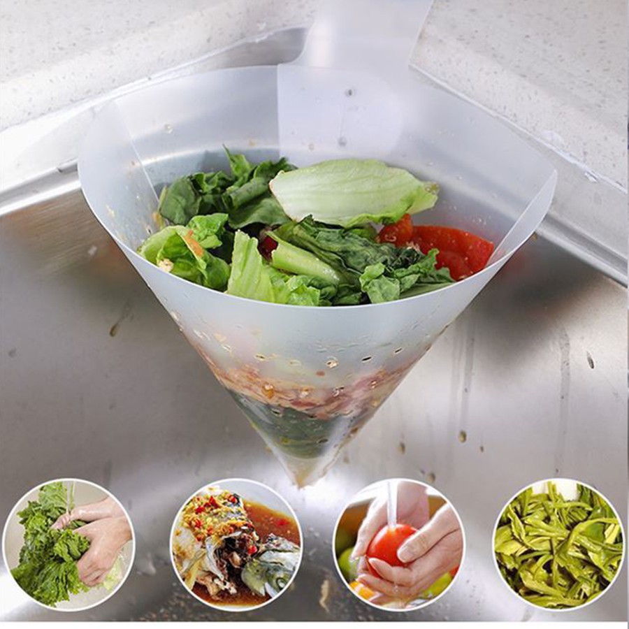 ✰Phễu nhựa lọc rác cho bồn rửa chén - Phễu lọc rác thông minhPhễu là 1 tấm nhựa có đục lỗ kích thước 42x19cm. Sau đó được quấn lại và treo vào bồn rửa dùng để lọc rác chống nghẹt ống thoát nước thải. Sau khi sử dụng có thể mở ra rửa sạch và đem cất.