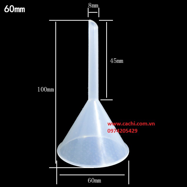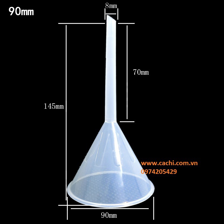 Phễu nhựa có các đường kính: 30mm, 60mm, 90mm