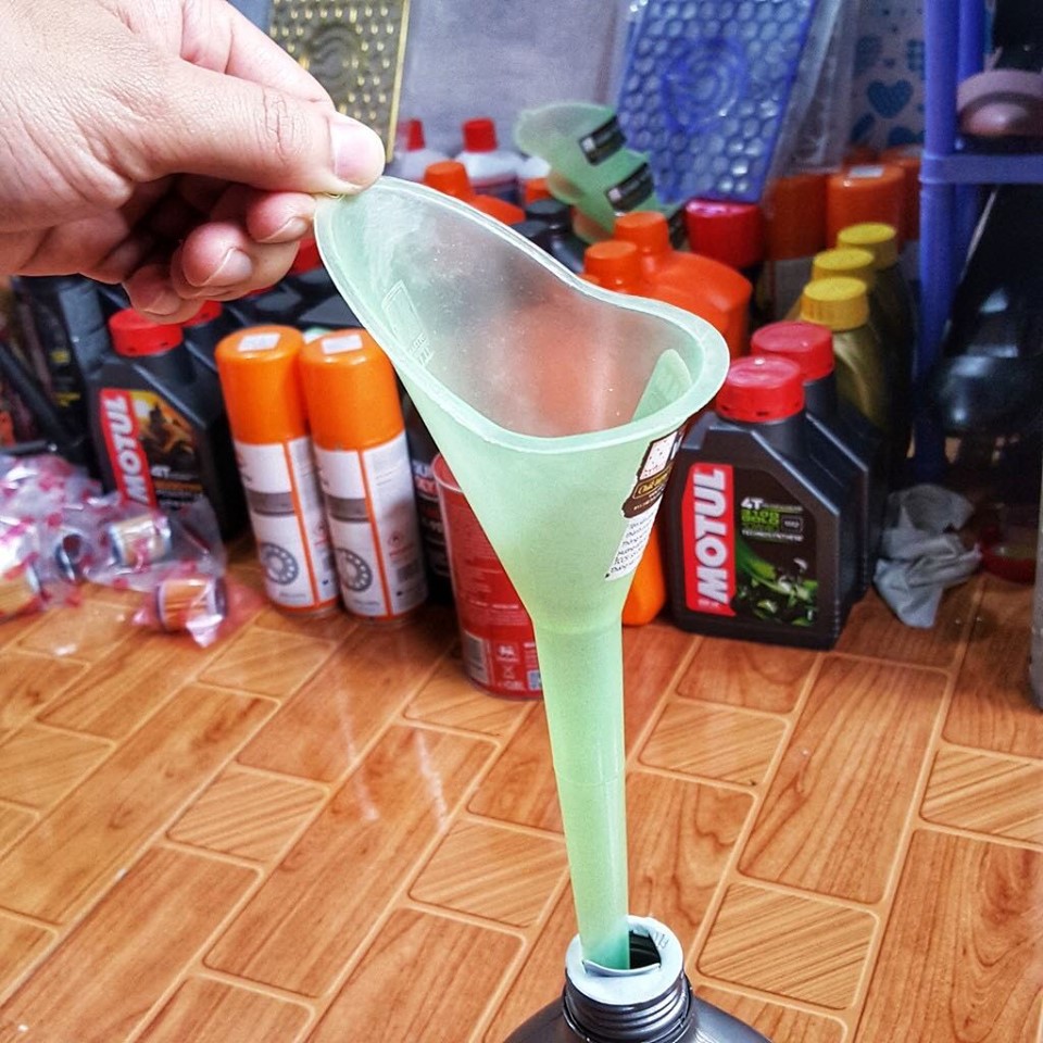 Sản phẩm phễu đổ nhớt được làm từ nhựa, không có gai, không có chế độ rungCông dụng sản phẩm: dùng để đổ nhớt vào động cơ xe máy một cách dễ dàng.