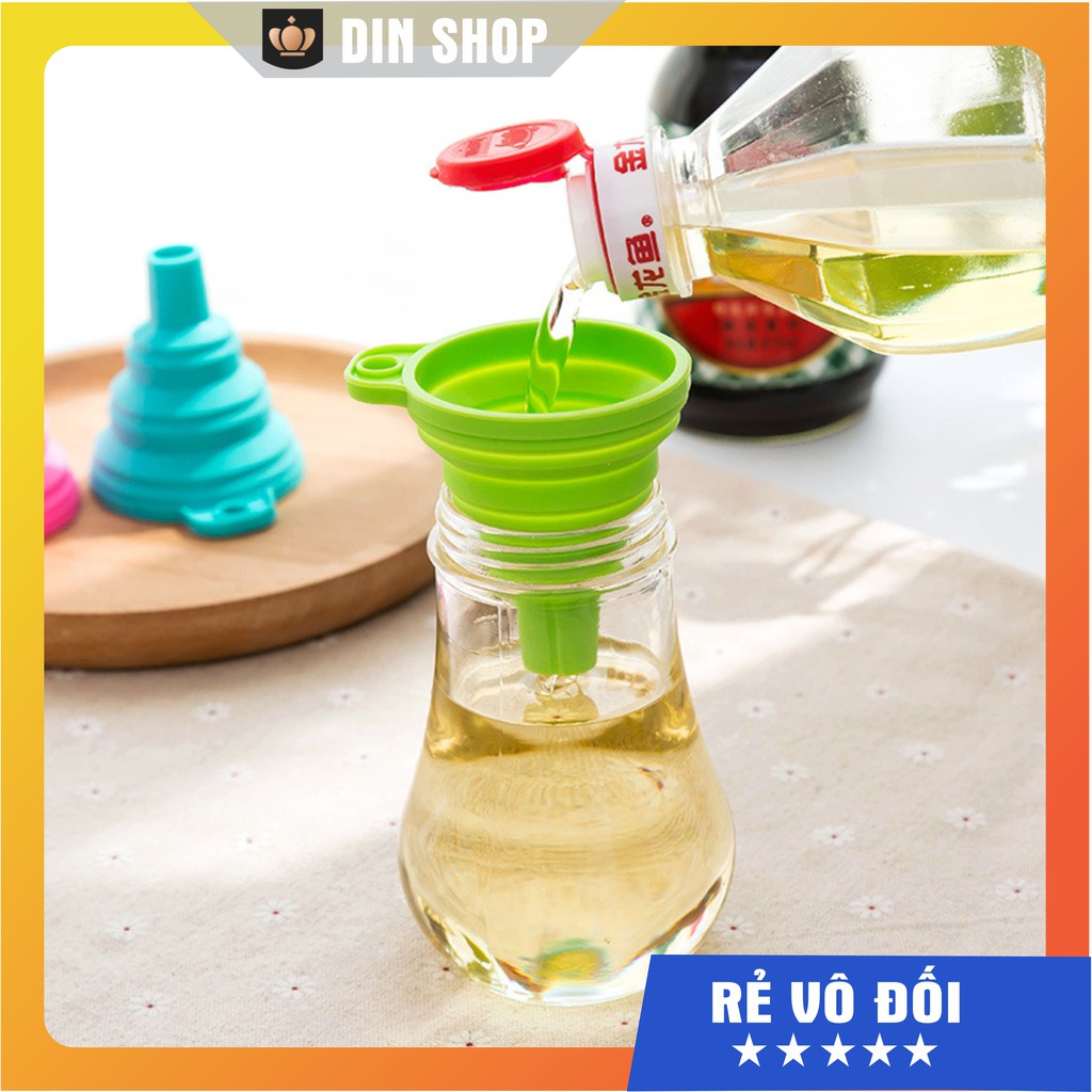 Phễu silicon gấp gọn ĐA NĂNGPhễu gấp gọn tiện dụng dùng để rót rượu, rót dầu, chất lỏng, chịu nhiệt tốt, nhiều màu sắc