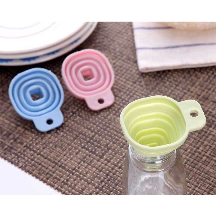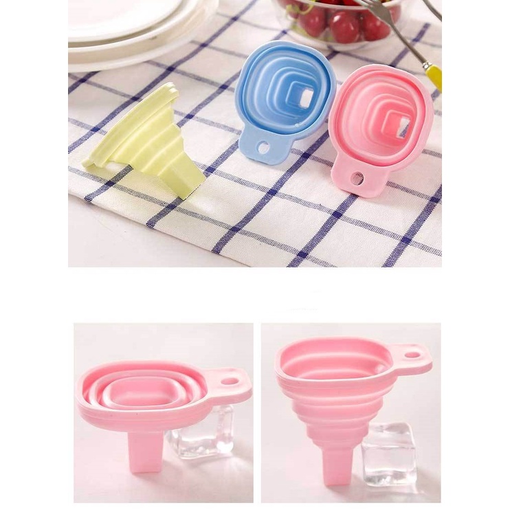 - Phễu gấp gọn nhỏ xinh chất liệu silicon chịu nhiệt tốt có miệng phễu rộng, chiều dài phễu có thể điều chỉnh được tùy theo lượng và loại dung dịch muốn rót, đảm bảo dung dịch không bị trào ngược trở lên.