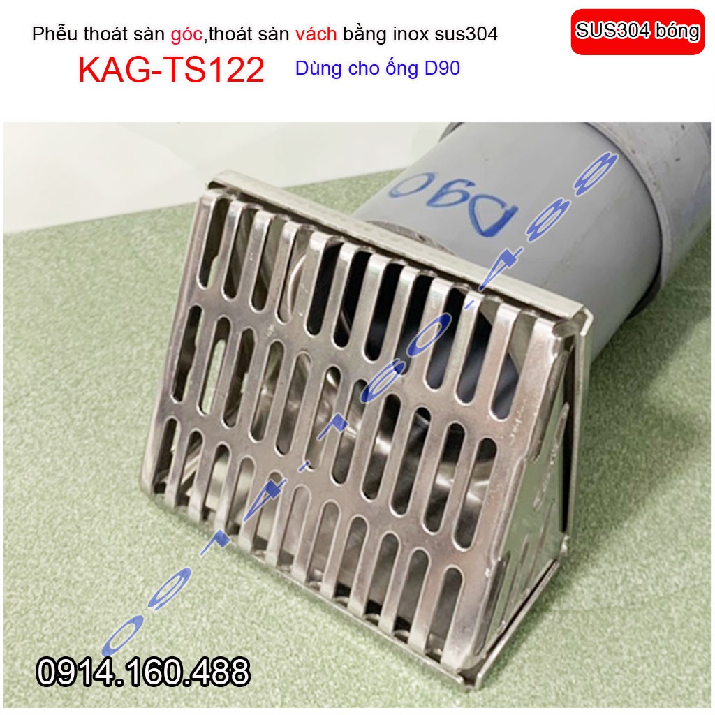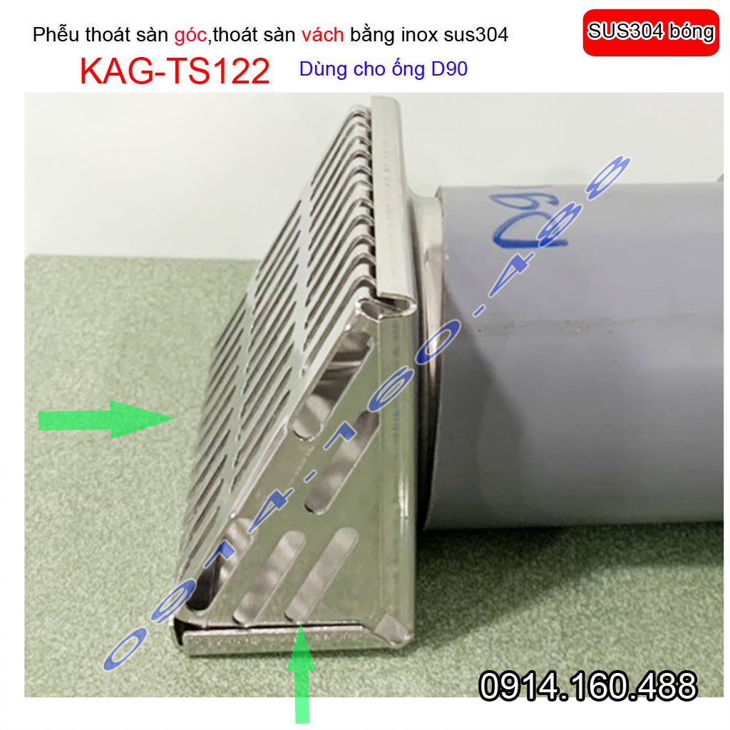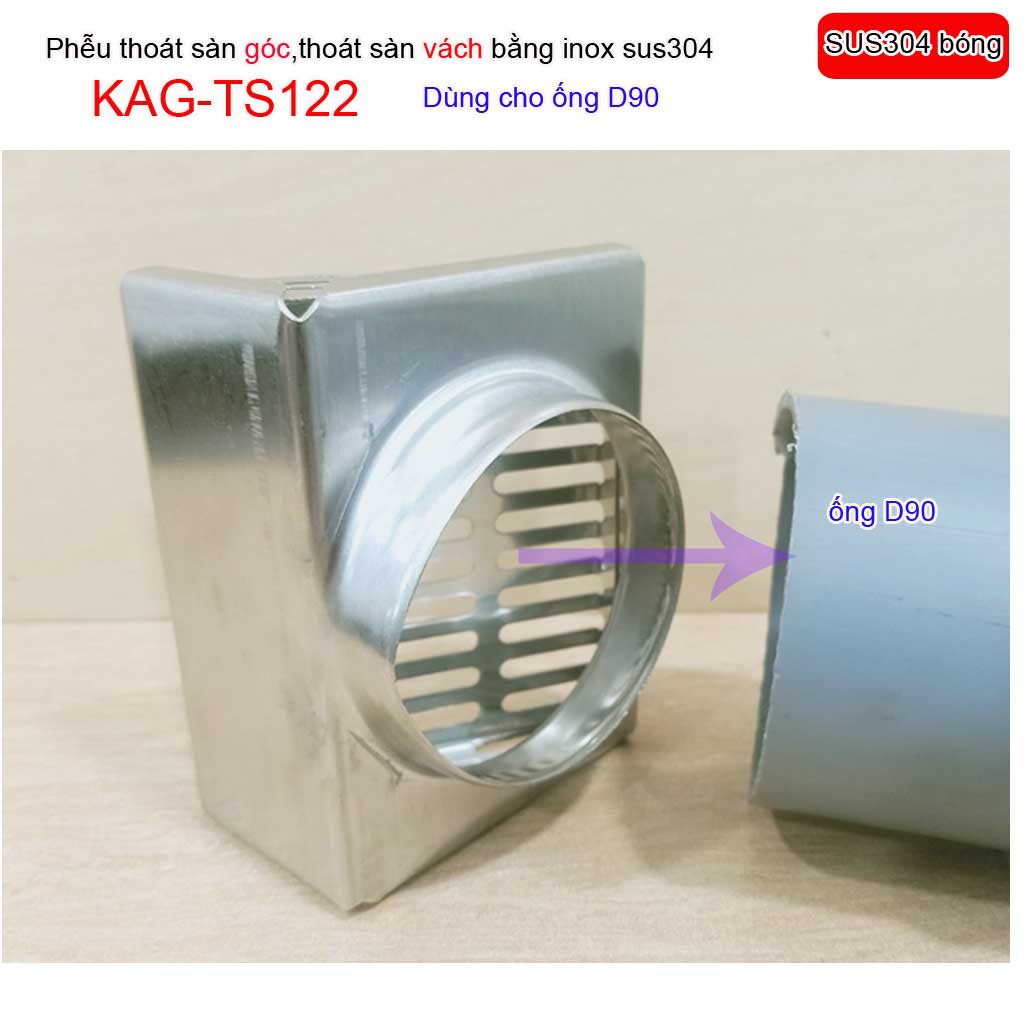 Phễu thoát nước mưa thoát ngang D90 KAG-TS122, phễu thoát nước vách tường hành lang ban công thoát nước nhanh sử dụng tốtChất liệu: Inox SUS304 Japan cao cấp, bền bỉ theo thời gian.