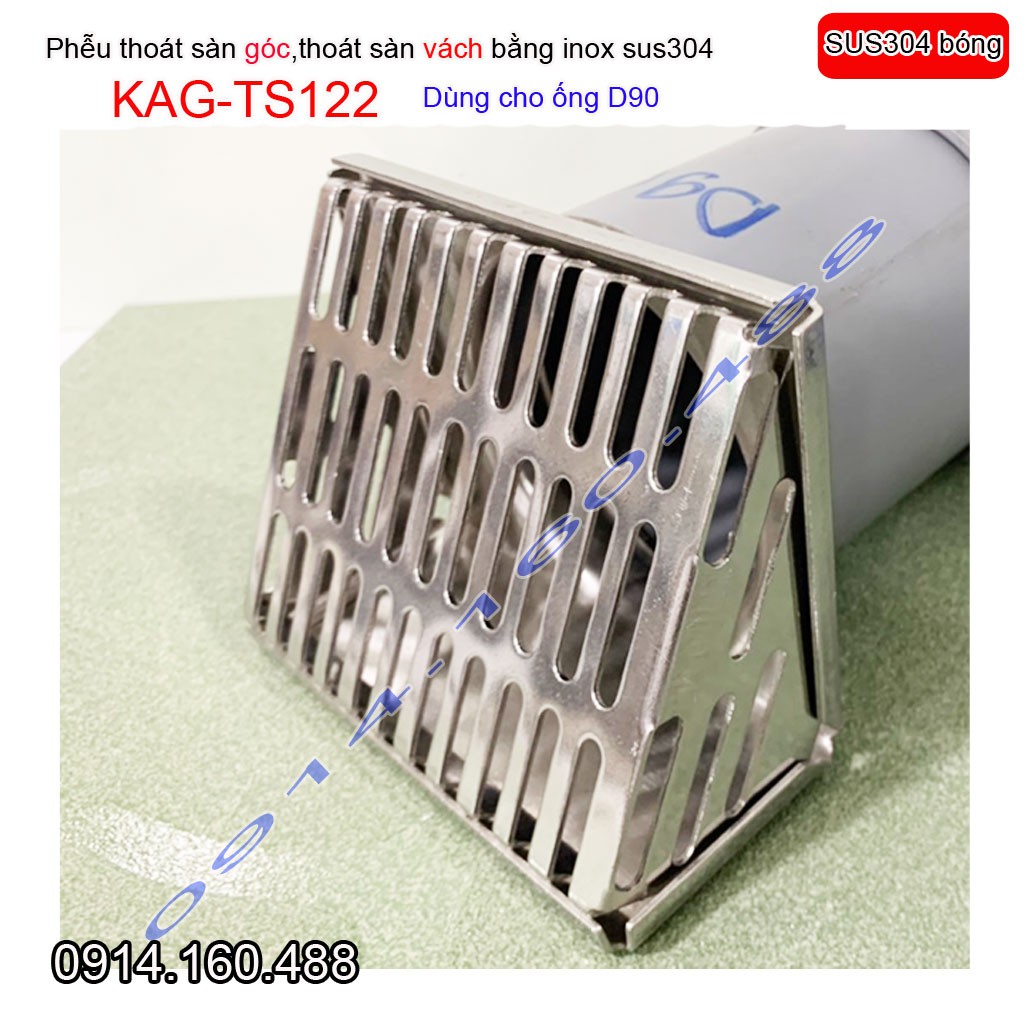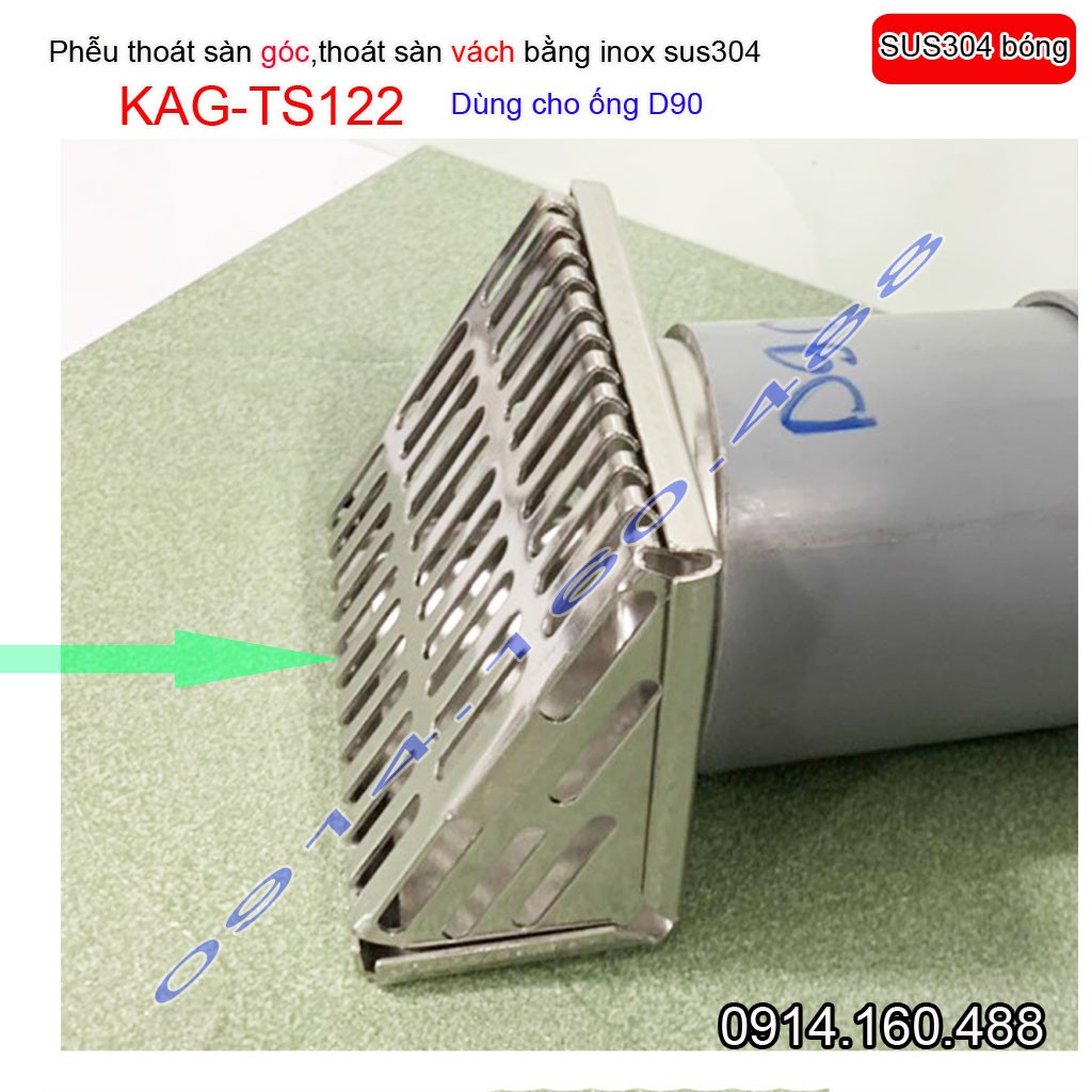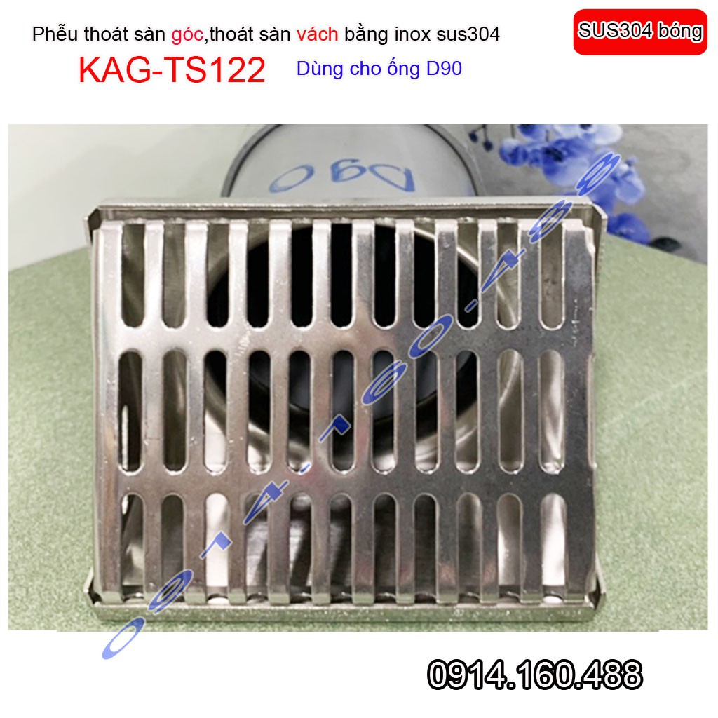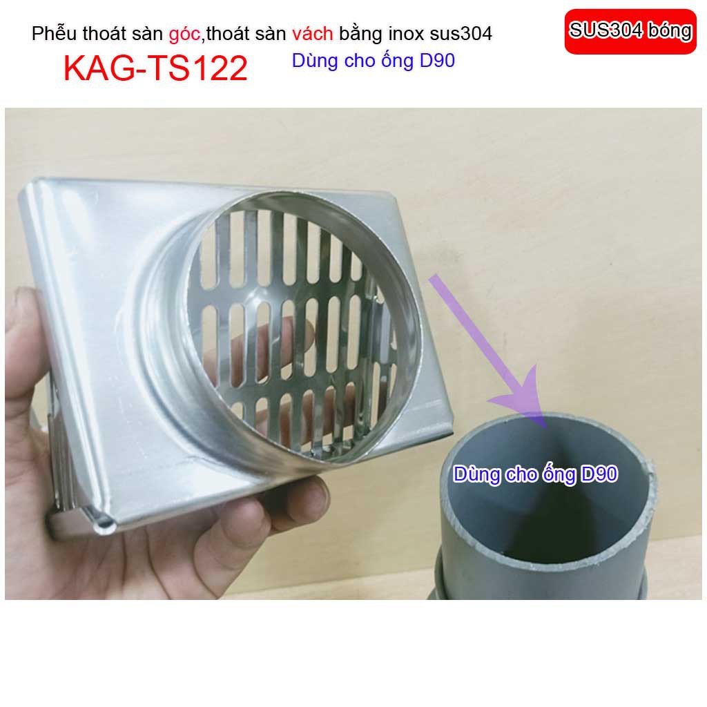 Phễu thoát nước mưa thoát ngang D90 KAG-TS122, phễu thoát nước vách tường hành lang ban công thoát nước nhanh sử dụng tốtChất liệu: Inox SUS304 Japan cao cấp, bền bỉ theo thời gian.
