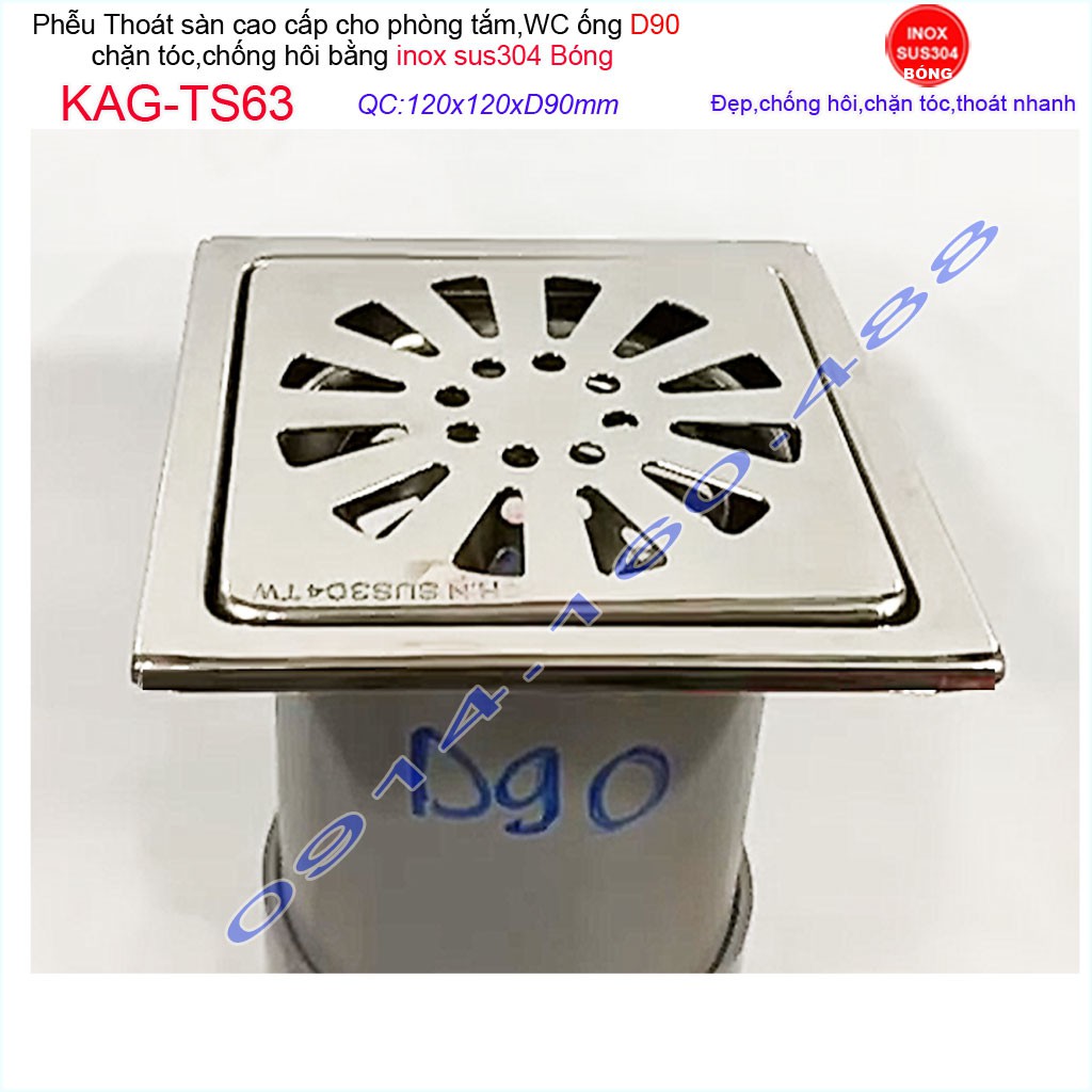 Thoát sàn KAG-TS63 dùng cho đường ống thoát có đường kính 9cm (D90mm)