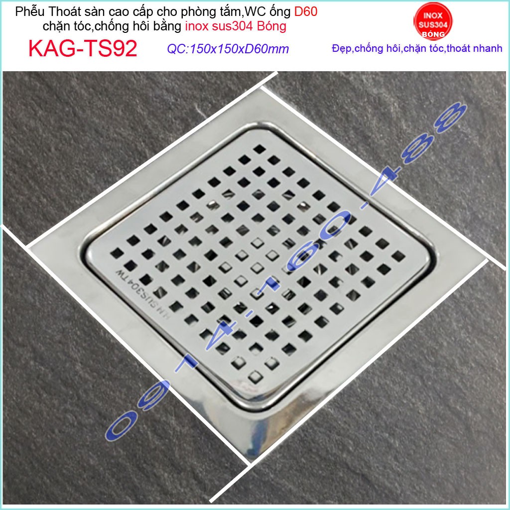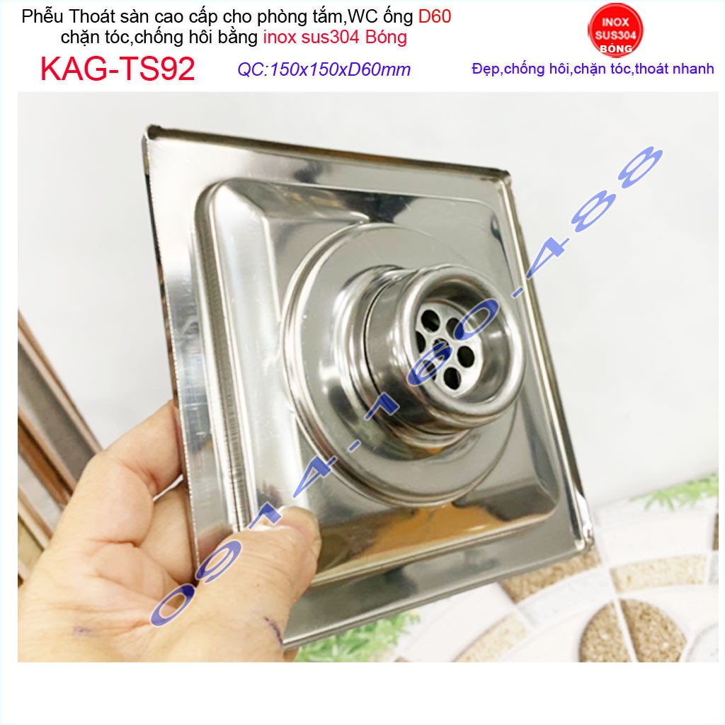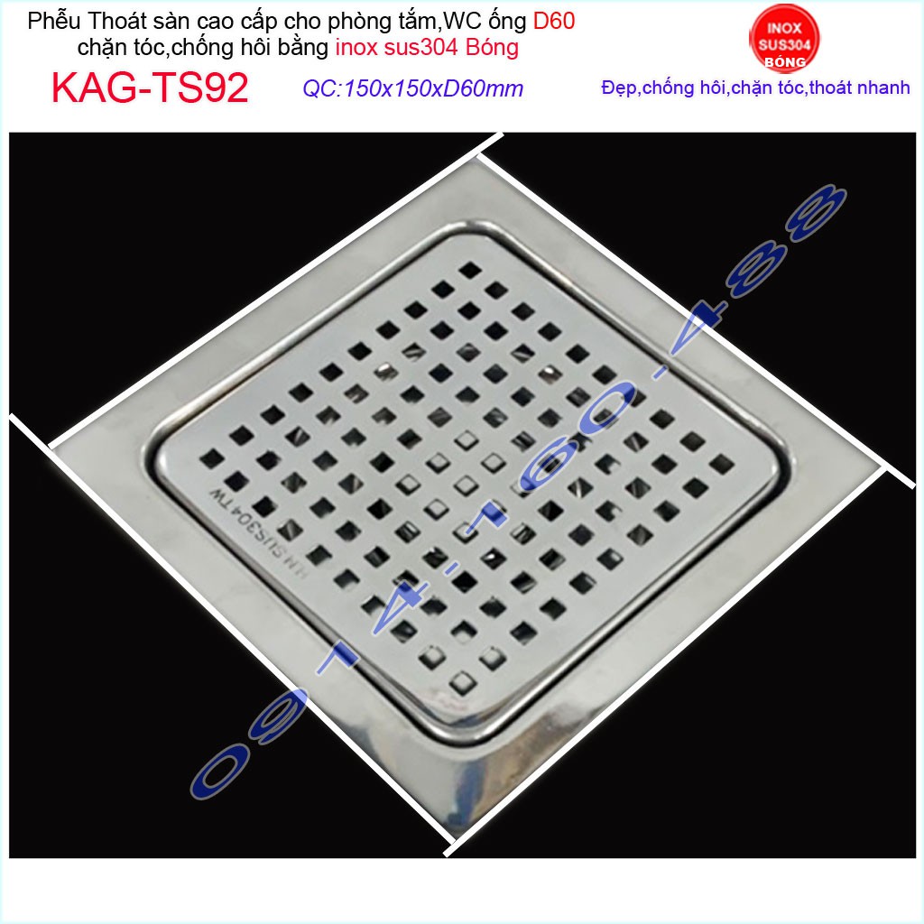 Thoát sàn KAG-TS92 dùng cho đường ống thoát có đường kính 6cm (D60mm)