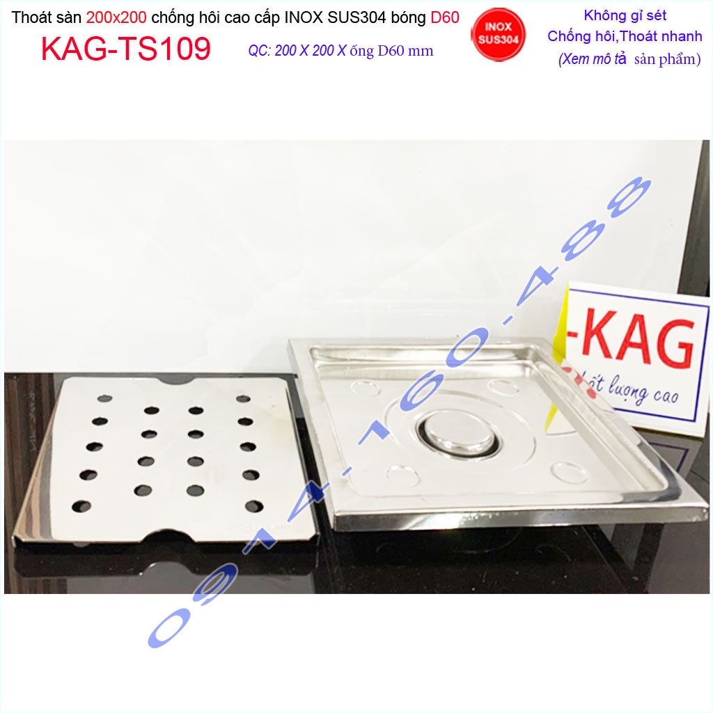 Phễu thoát sàn 20x20cm KAG-TS109-D60 Inox 304, thoát nước chống hôi nhà tắm mặt SUS304 dập khuôn D60 thoát nhanh chặn tóc tốtSHOP GIAO HÀNG ĐÚNG HÌNH SHOP CHỤP