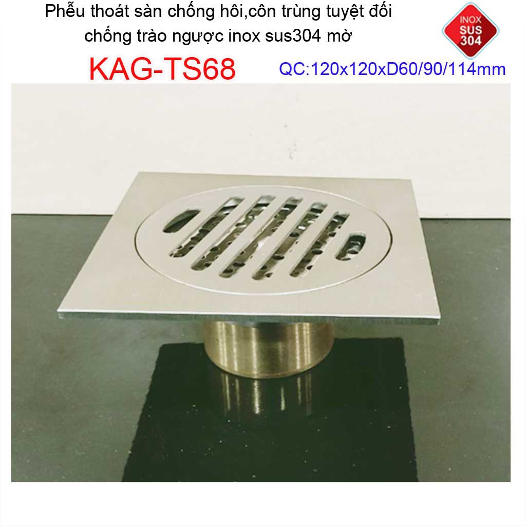 Giới thiệu Phễu thoát sàn chống mùi hôi Inox 304 mờ KAG-TS181, phễu thoát nước chống trào ngược, ga thoát sàn KAG-TS68
