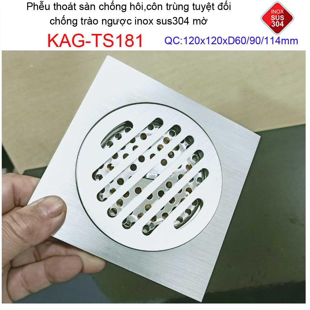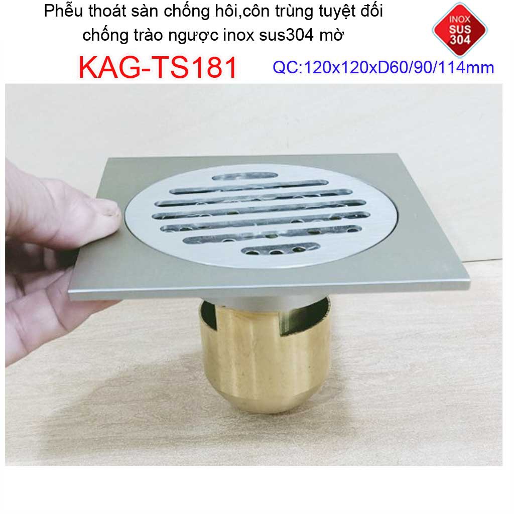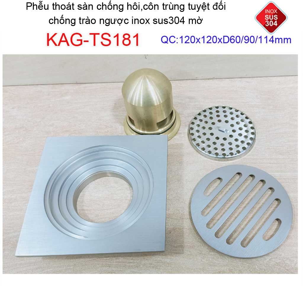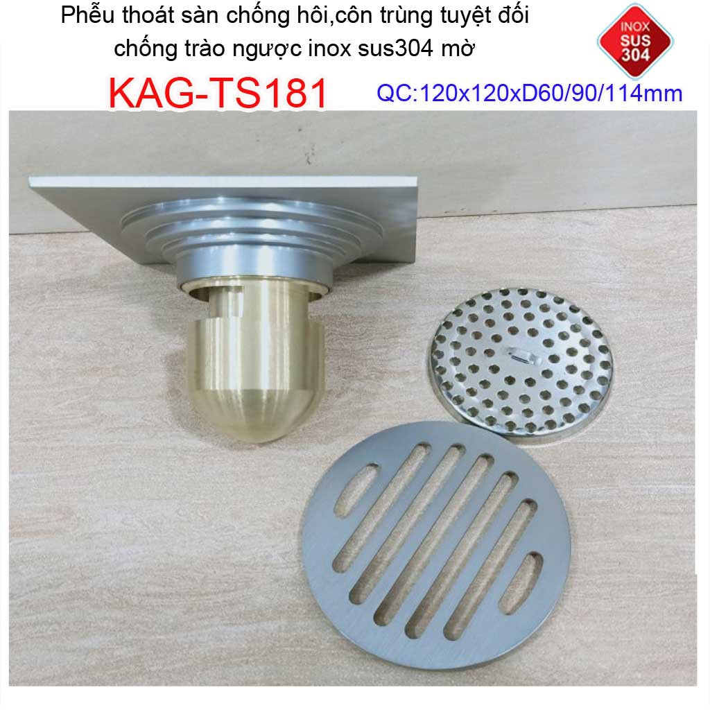Phễu thoát sàn chống mùi hôi Inox 304 mờ KAG-TS181, phễu thoát nước chống trào ngược, ga thoát sàn KAG-TS68