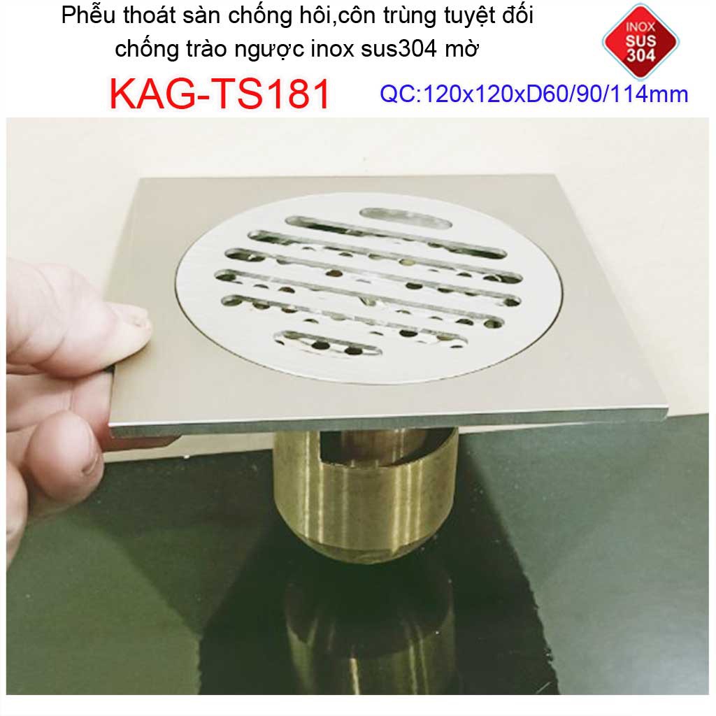 Nhà cửa & Đời sống > Đồ dùng phòng tắm > Khác || Phễu thoát sàn chống mùi hôi Inox 304 mờ KAG-TS181, phễu thoát nước chống trào ngược, ga thoát sàn KAG-TS68Còn hàng