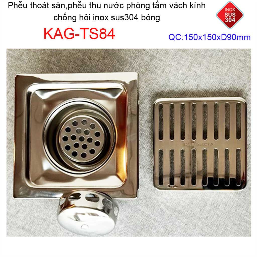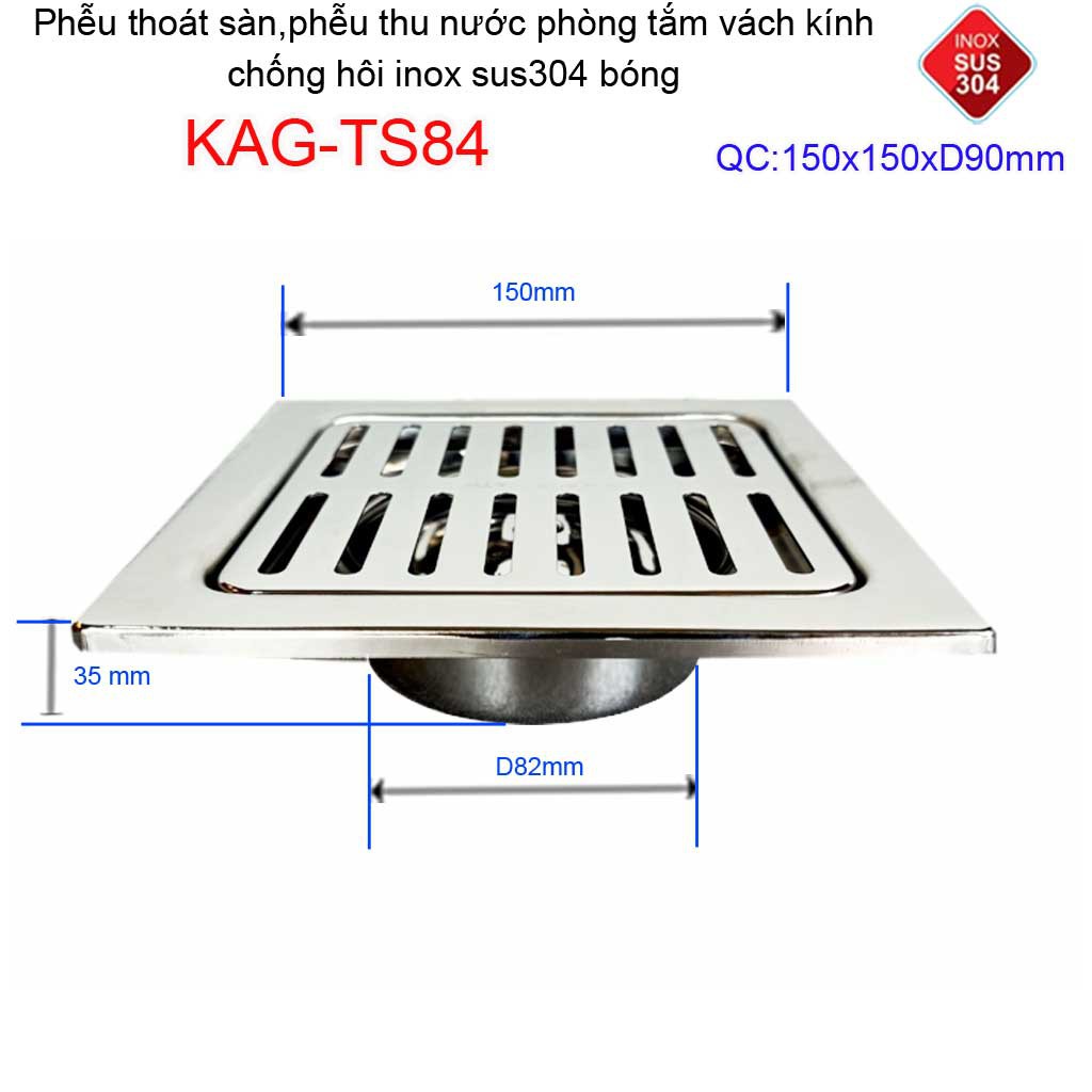 Thoát sàn KAG-TS84 kích thước 15x15cm, ống thoát có đường kính 9cm (D90mm)