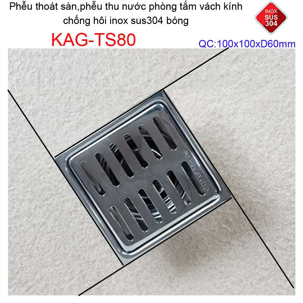 Thoát sàn KAG-TS80 kích thước 10x10cm, ống thoát có đường kính 6cm (D60mm)