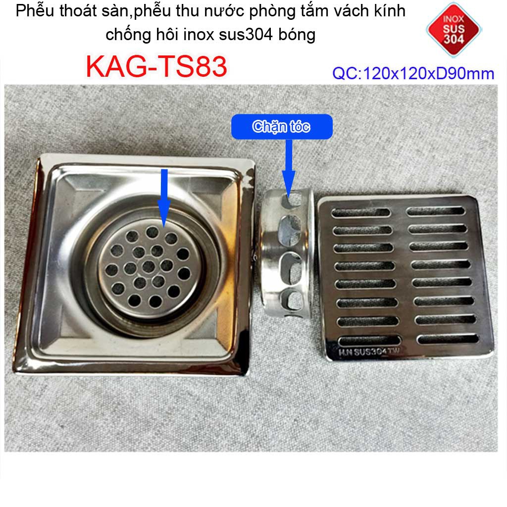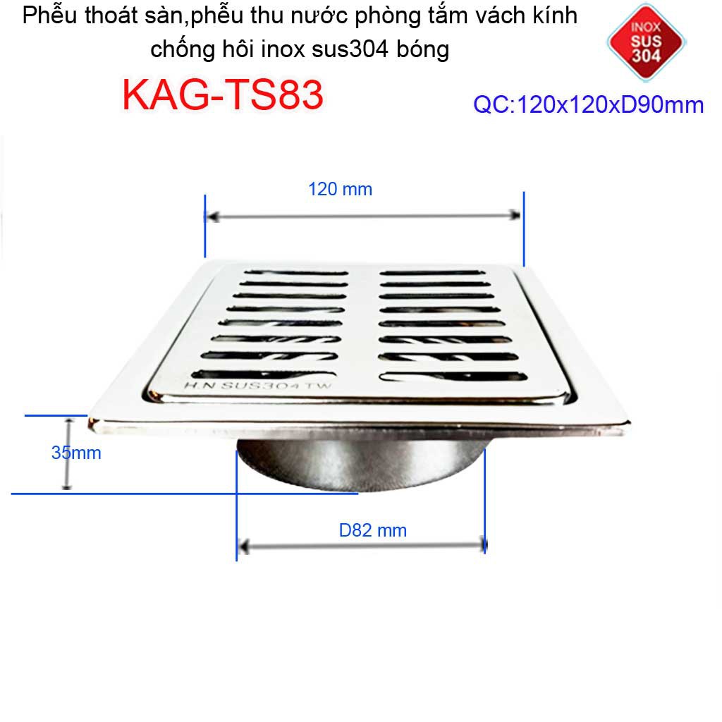 Thoát sàn KAG-TS83 kích thước 12x12cm, ống thoát có đường kính 9cm (D90mm)