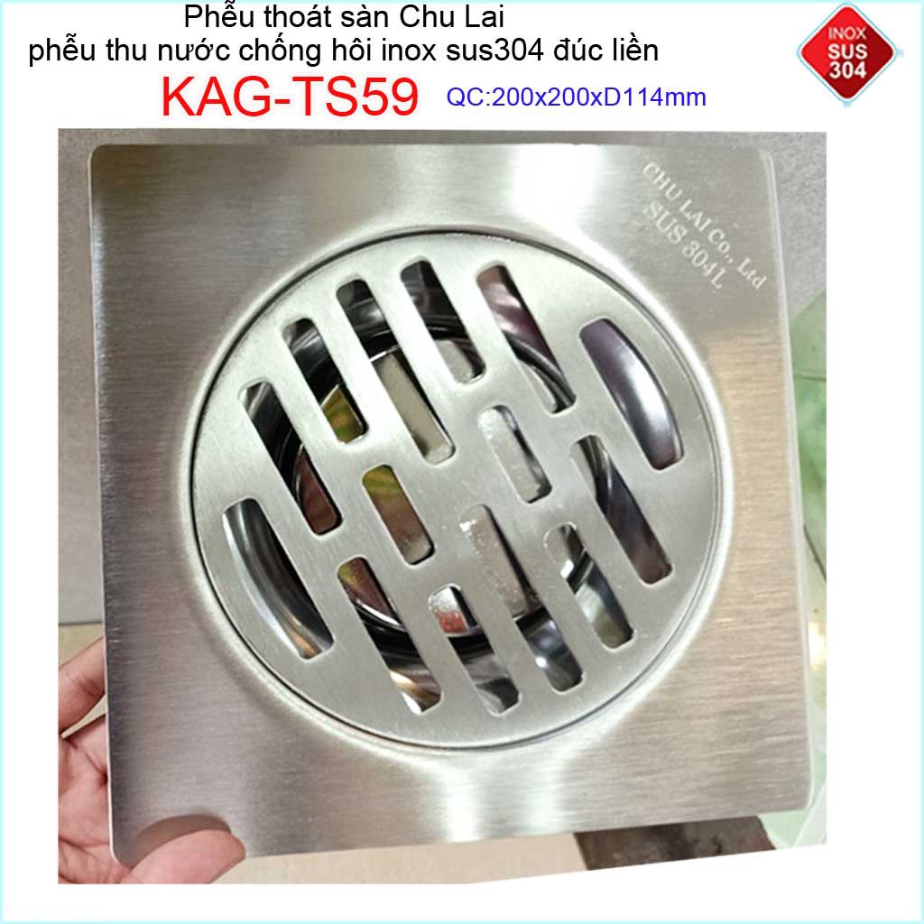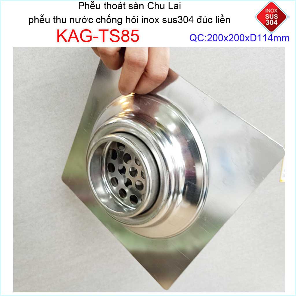Giới thiệu Phễu thoát sàn Chu lai ống 11.4cm Inox 304, phễu thoát nước chống hôi 15x15cm-20x20cm D114 KAG-TS85, KAG-TS96