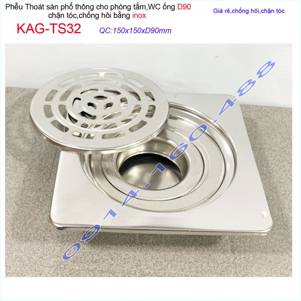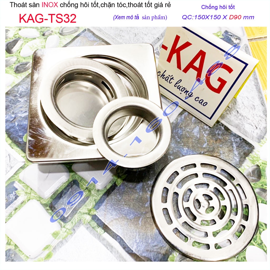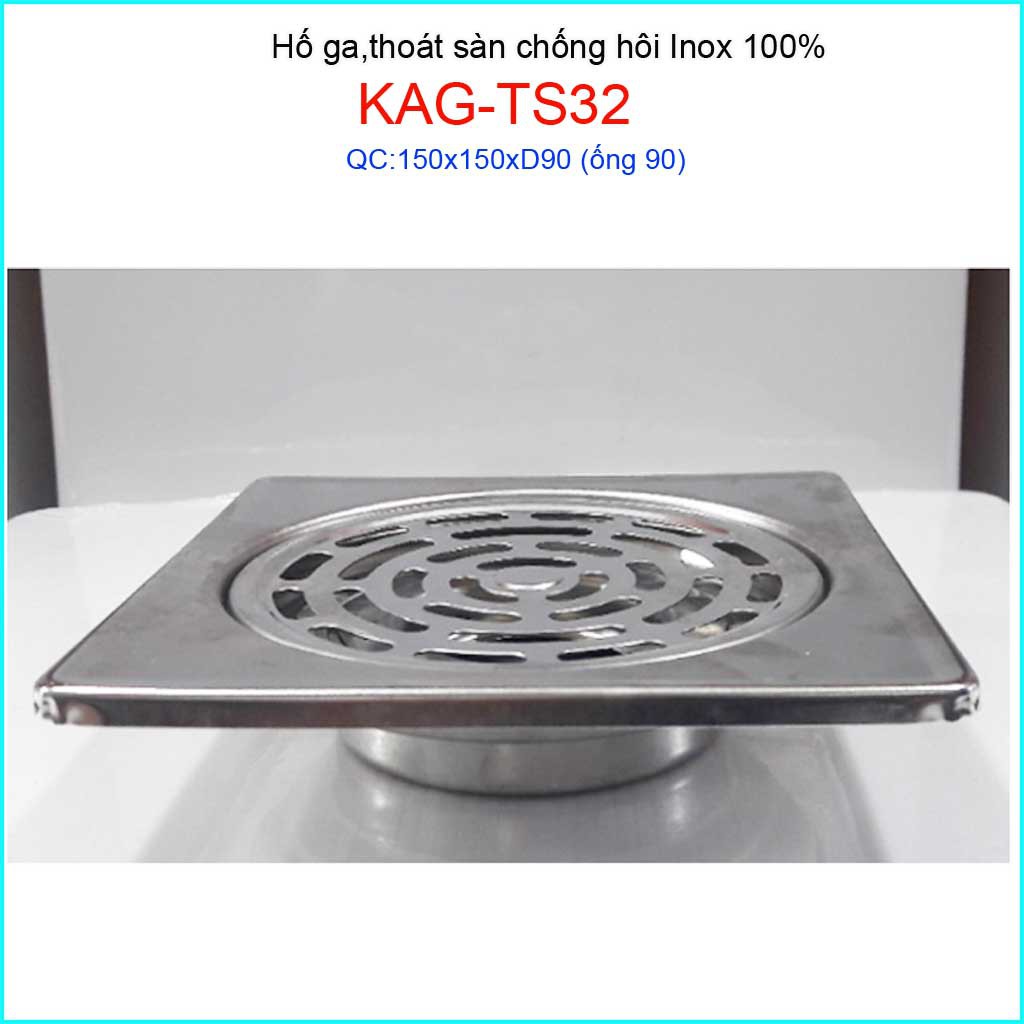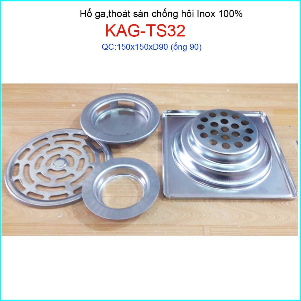 Phễu thoát sàn Inox 100% không rỉ séc, hố ga thoát sàn giá rẻ KAG-TS32 sản xuất Inox Việt nam, chống rỉ séc