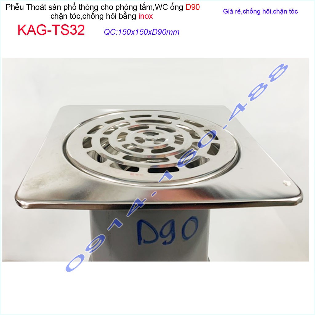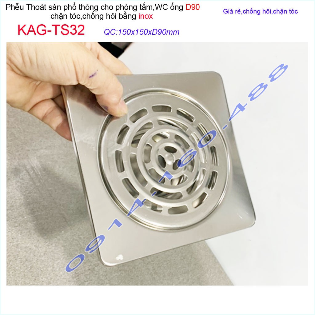 Giới thiệu Phễu thoát sàn inox 15x15cm KAG-TS32, hố ga thoát sàn nước vuông 15x15cm ống thoát D90 thoát nhanh giá tốt sử dụng tốt