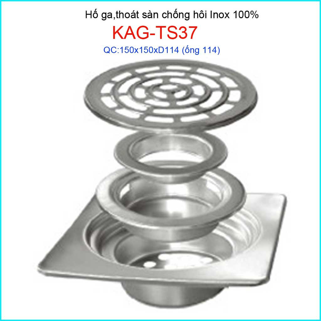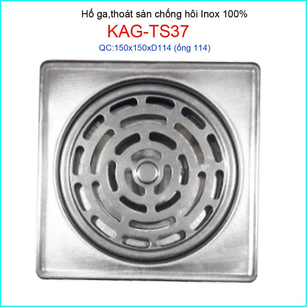 Phễu thoát sàn Inox KAG-TS37 chống hôi 15x15cm, hố ga thoát sàn cho ống 114mm giá tốt chất lượng tốt