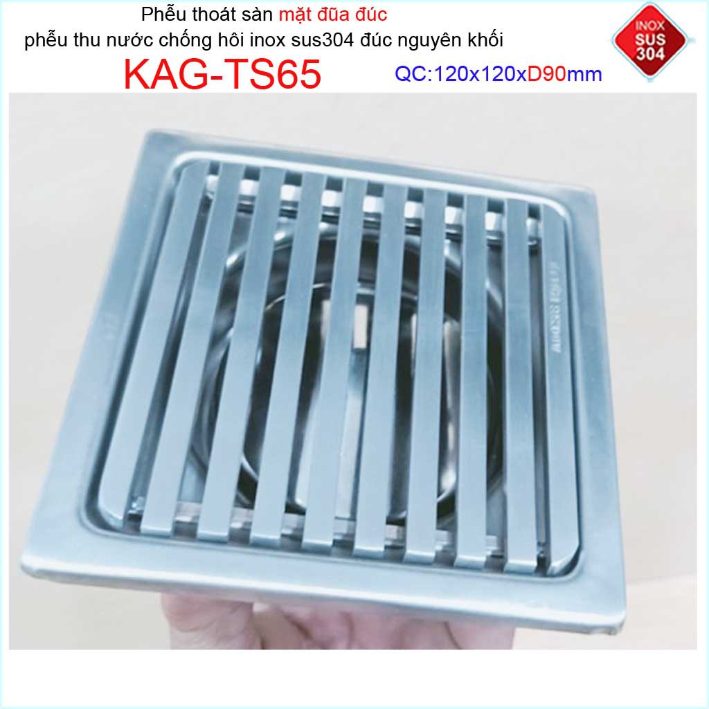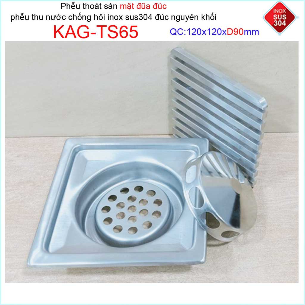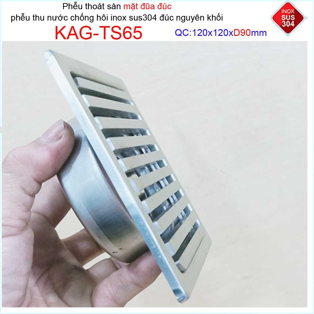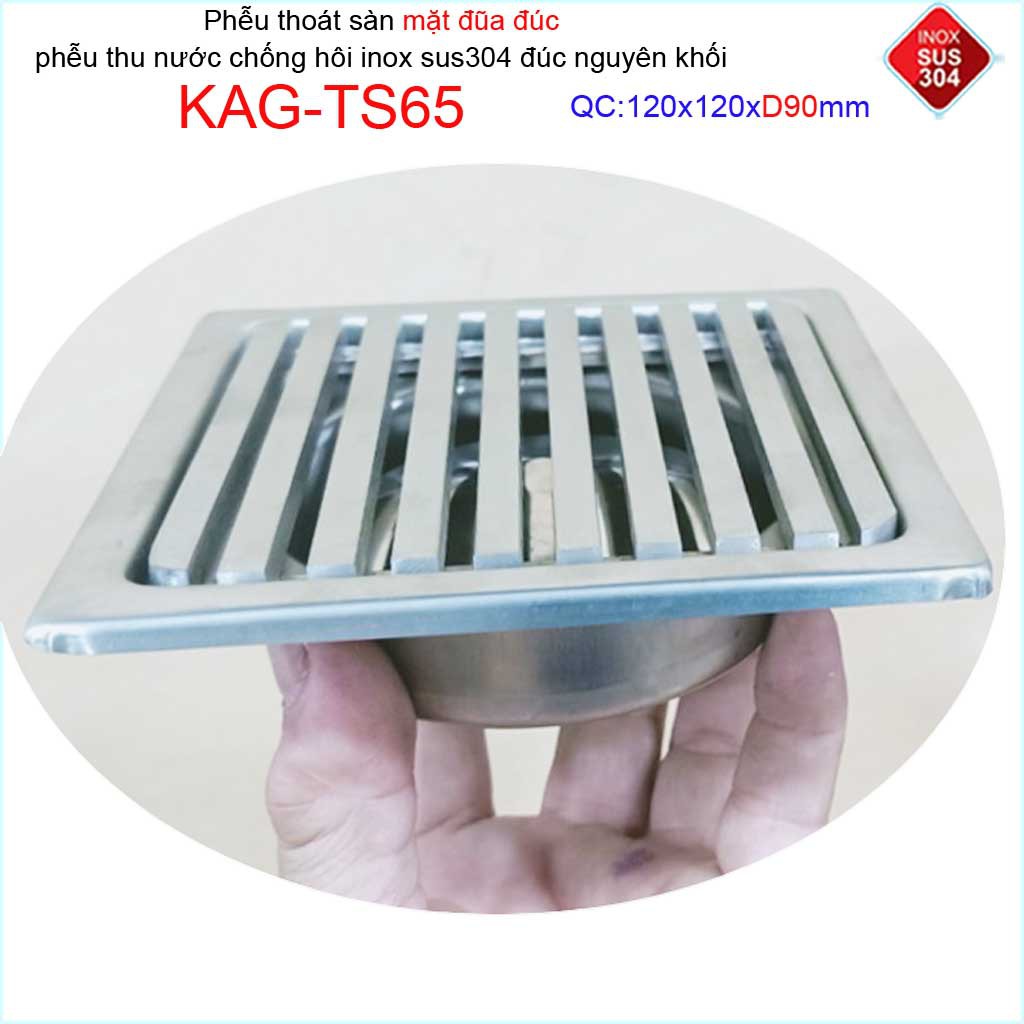 Phễu thoát sàn mặt đũa inox đúc Inox Kace 12x12cm D90 , thoát sàn KAG-TS65 (12x12cm D90) chống hôi SUS304