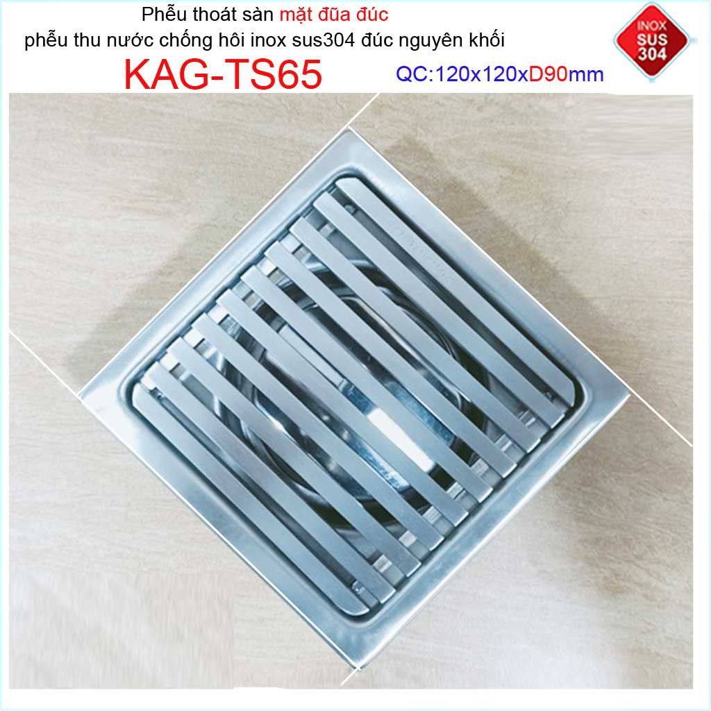 Giới thiệu Phễu thoát sàn mặt đũa inox đúc Inox Kace 12x12cm D90 , thoát sàn KAG-TS65 (12x12cm D90) chống hôi SUS304