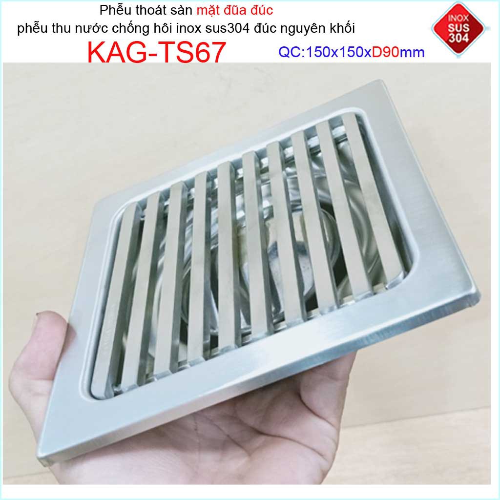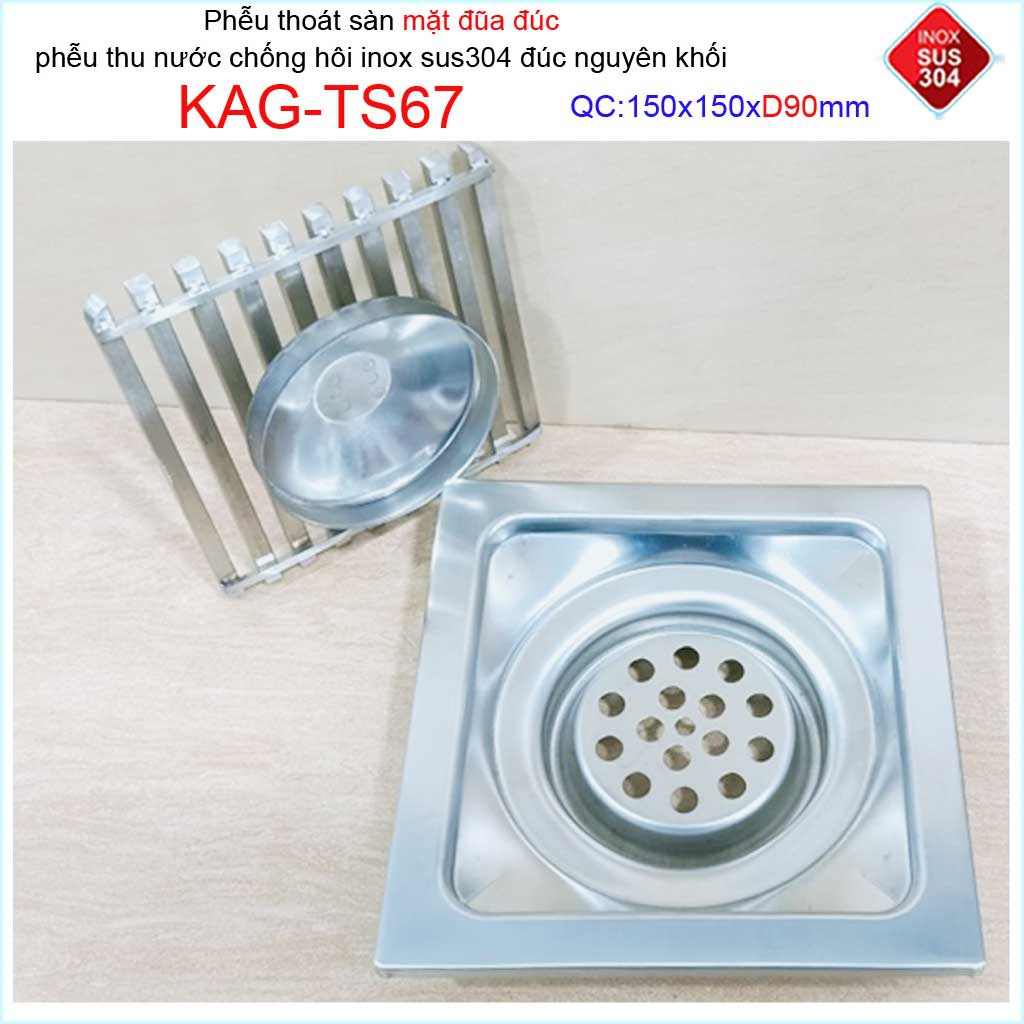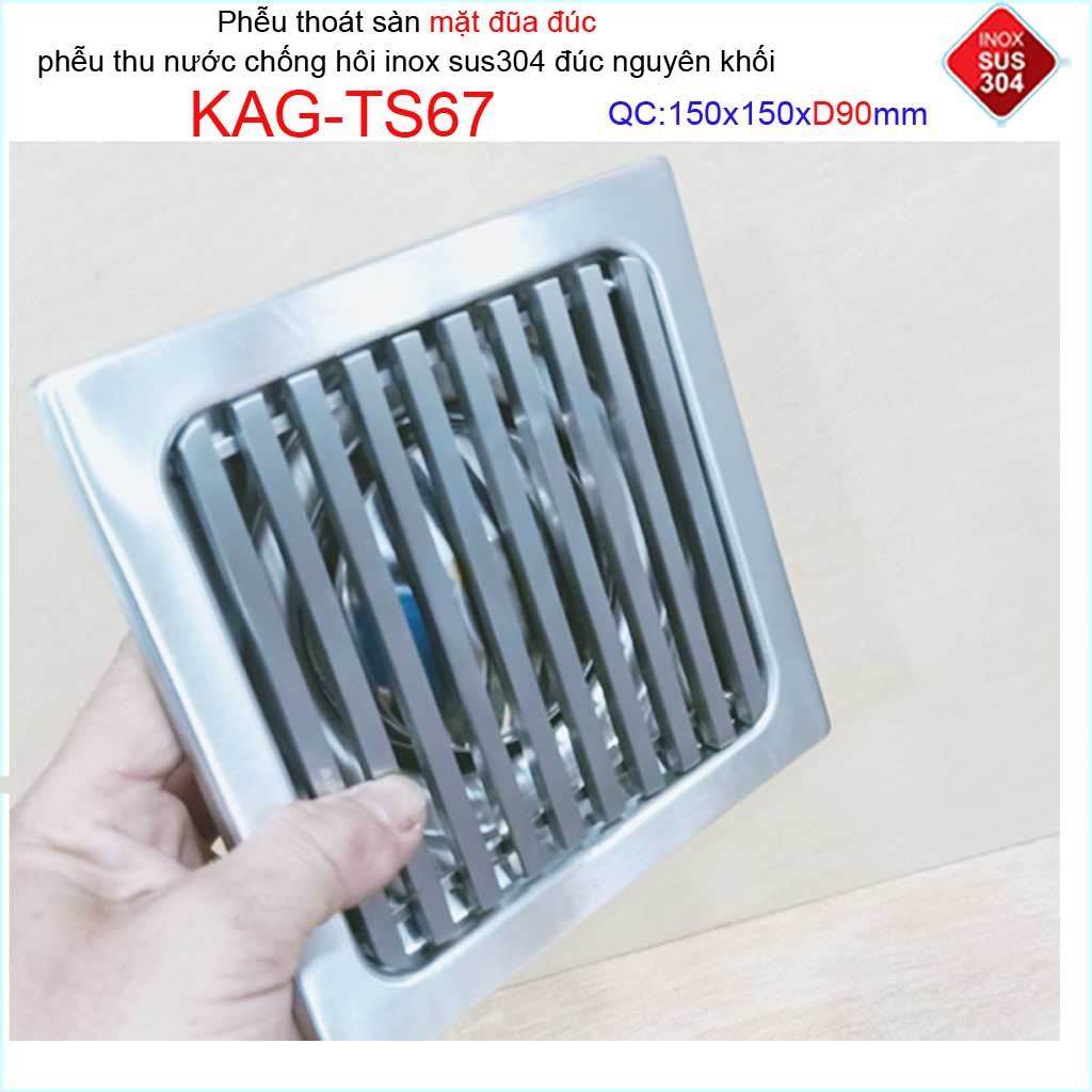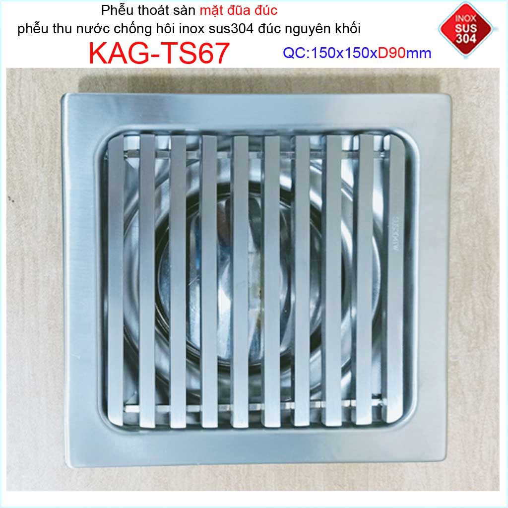 Phễu thoát sàn mặt đũa inox đúc Inox Kace 15x15cm D90 , thoát sàn KAG-TS67 (15x15cmD90) chống hôi SUS304