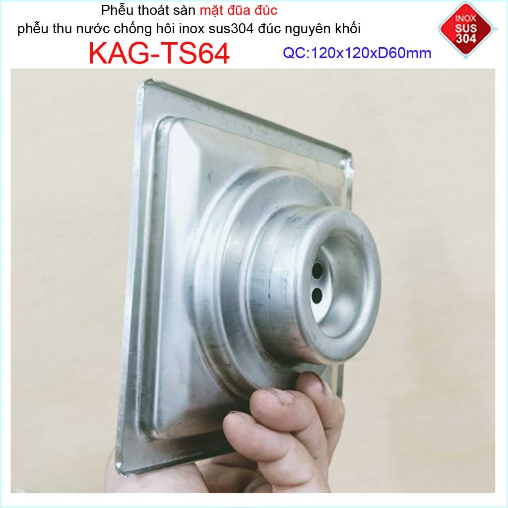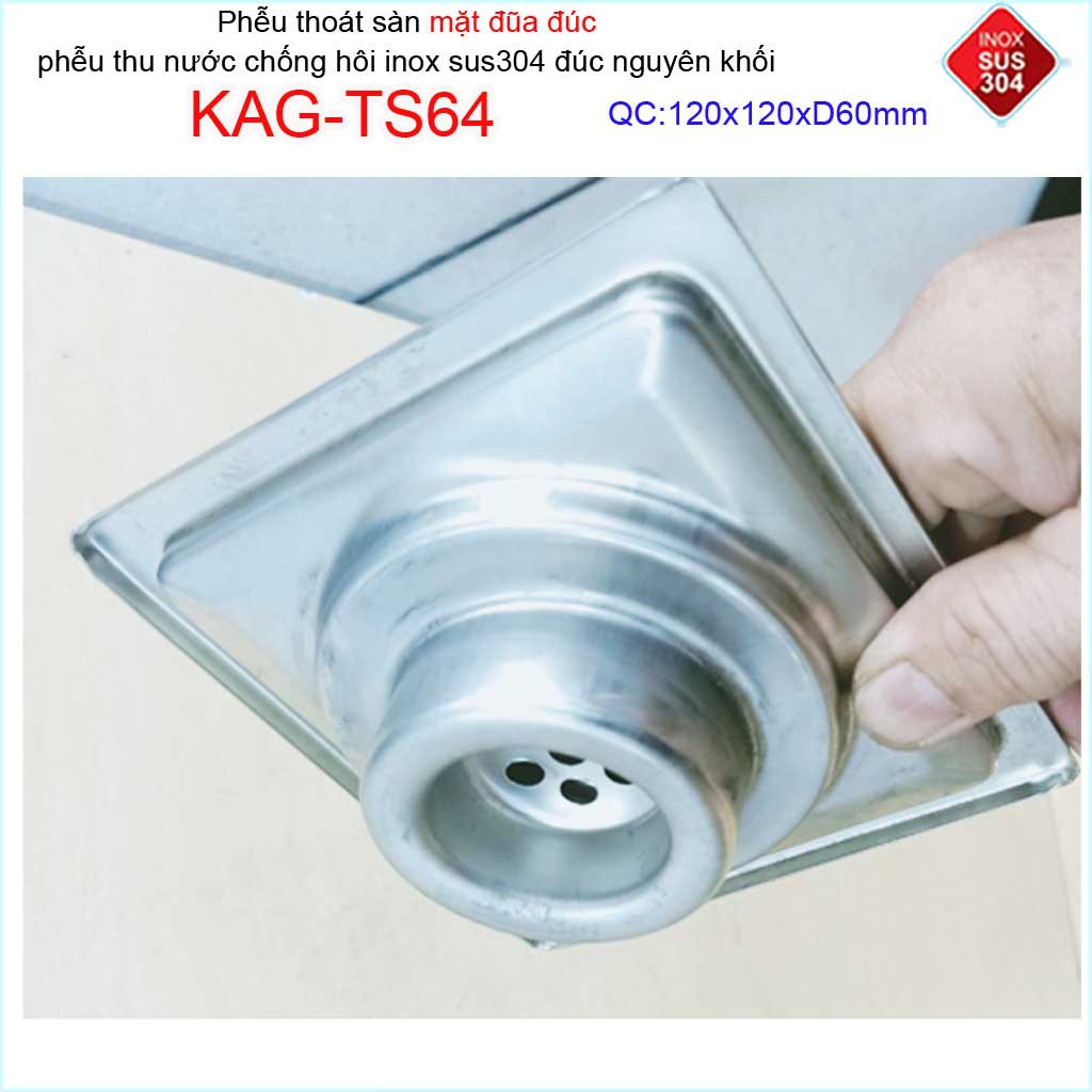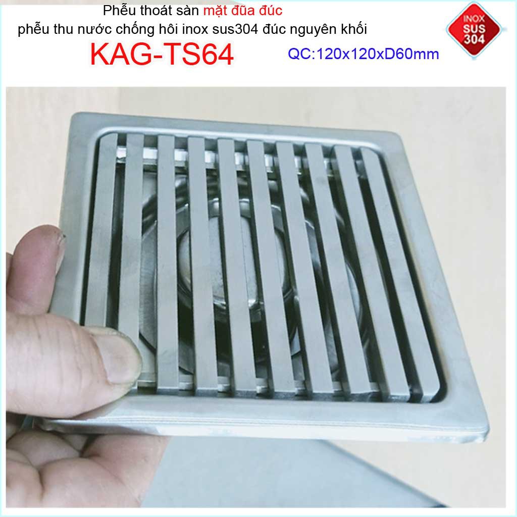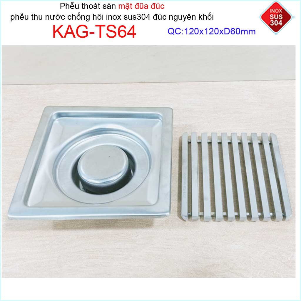 Phễu thoát sàn mặt đũa inox đúc Inox Kace 12x12cm D60 , thoát sàn KAG-TS64 (12x12cm D60) chống hôi SUS304