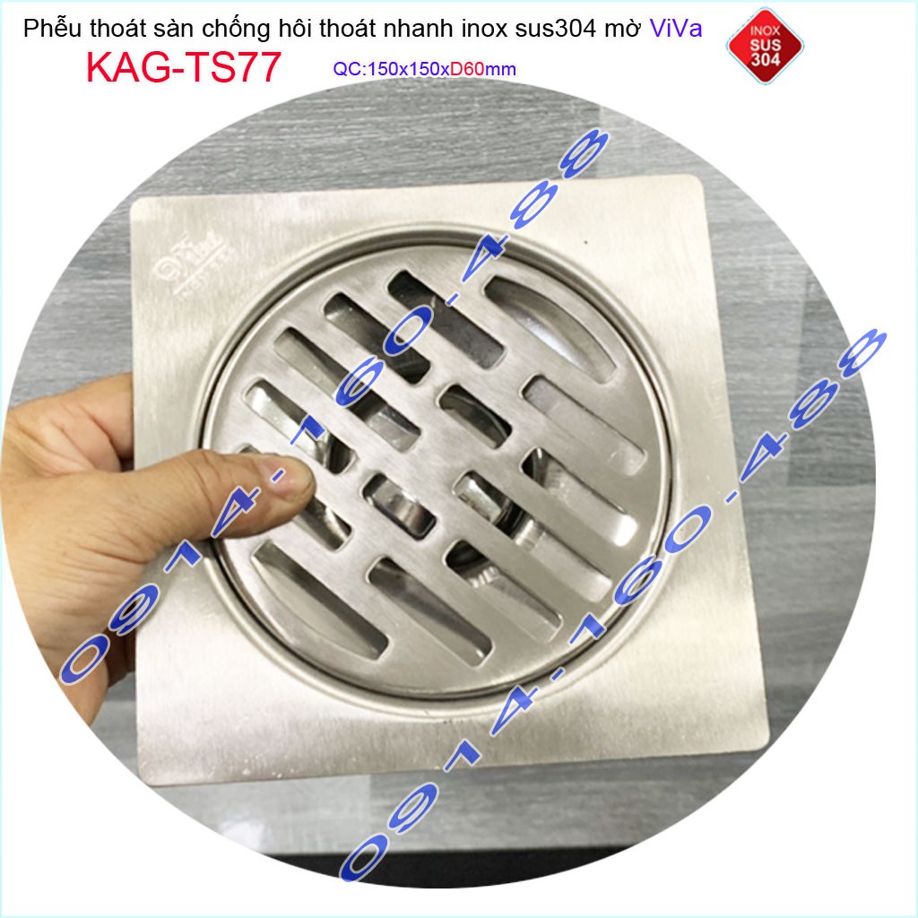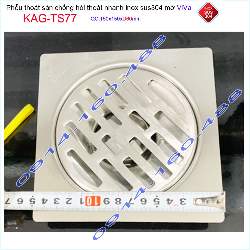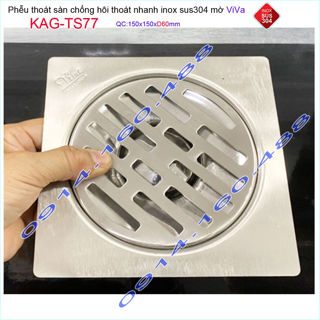 Phễu thoát sàn Viva KAG-TS77 15x15cm D60, phễu thoát sàn SUS304 đúc liền khối sales 40%, hố ga chống hôi inox 304 dày