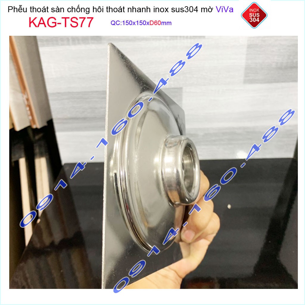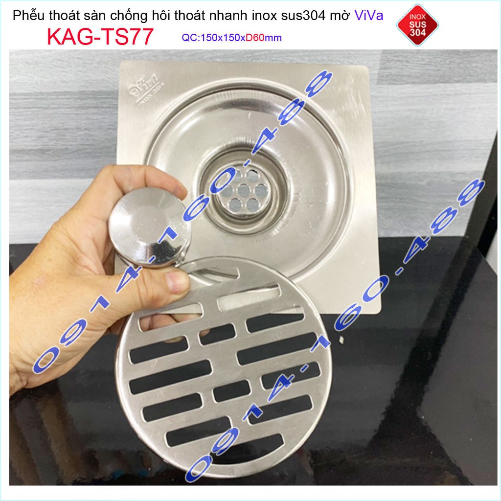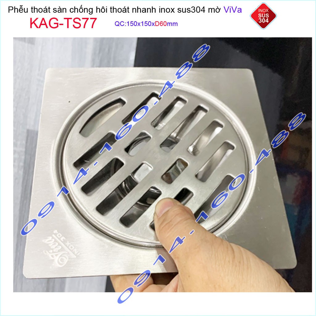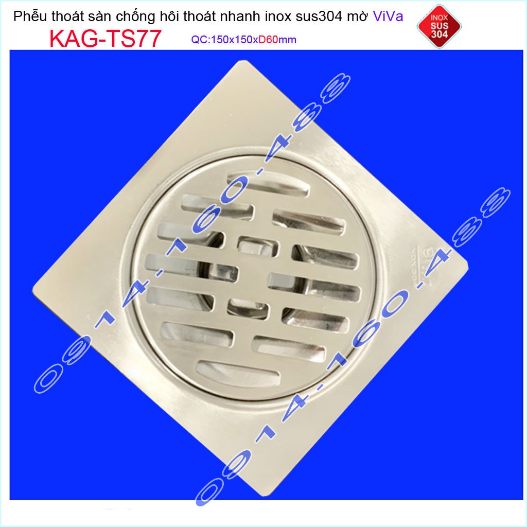Phễu thoát sàn Viva KAG-TS77 15x15cm D60, phễu thoát sàn SUS304 đúc liền khối sales 40%, hố ga chống hôi inox 304 dày
