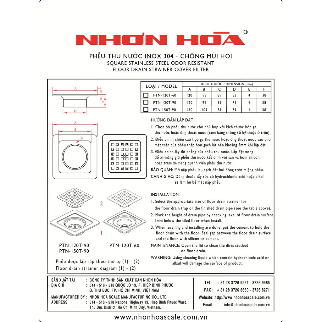 Giới thiệu Phễu thu nước phòng tắm cao cấp chống hôi Nhơn Hòa