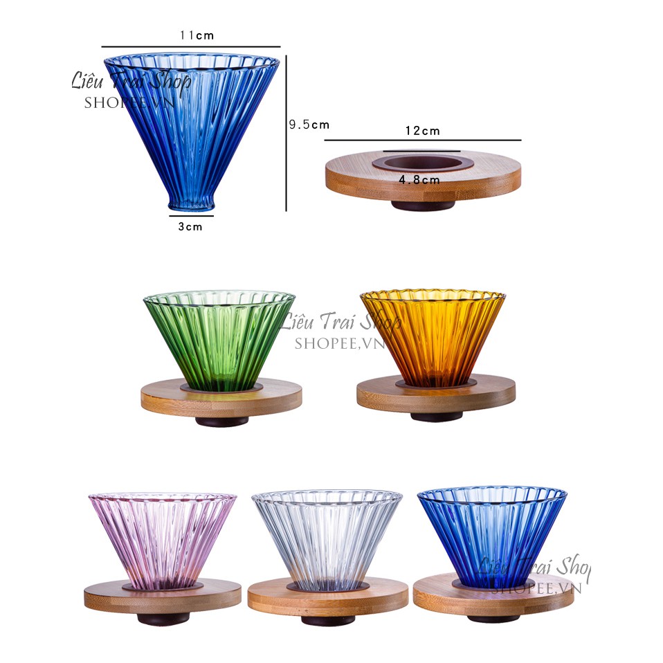 Nhà cửa & Đời sống > Dụng cụ nhà bếp > Dụng cụ pha trà, cà phê || Phễu v60 pha cà phê cafe v60 giấy lọc Pour over drip thuỷ tinh nhiều màu giá gỗ trònCòn hàng