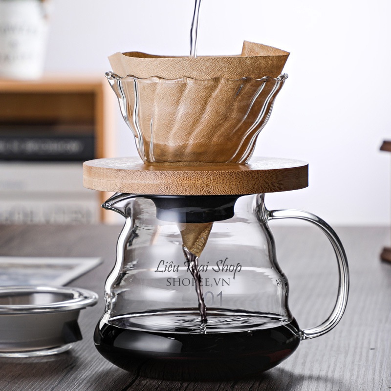 Bộ phễu v60 pha cà phê giấy lọc pour over thủy tinh