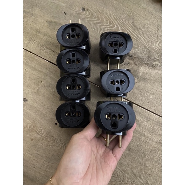 Thiết Bị Điện Gia Dụng > Mạch điện & Phụ tùng > Ổ cắm điện & Dây nối || Phích cắm ba chạc màu đen đầu trâu VinakipCòn hàng