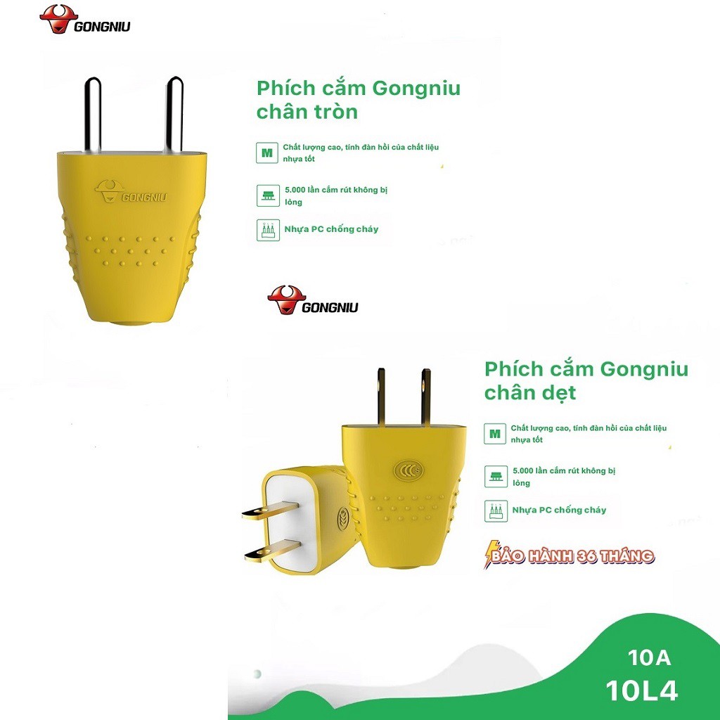 Phích cắm Gongniu chống va đập cách điện bền đẹp. Là phích cắm điện cao cấp và có độ an toàn cao dùng cho các thiết bị điện gia dụng, điện tử sử dụng trong nhà, trong văn phòng, các thiết bị có giá trị,…