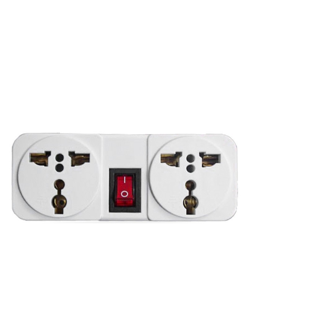 Ổ Cắm Chia 2 Ổ Kèm Công Tắc, Chuyển Từ 1 Ổ Sang 2 Ổ 3 Chấu, Công Suất 2000W, ABS chống cháyPhích cắm (Ổ cắm) chia ổ MADE IN THAILAND chia 2 ổ,2000W, ABS chống cháy.