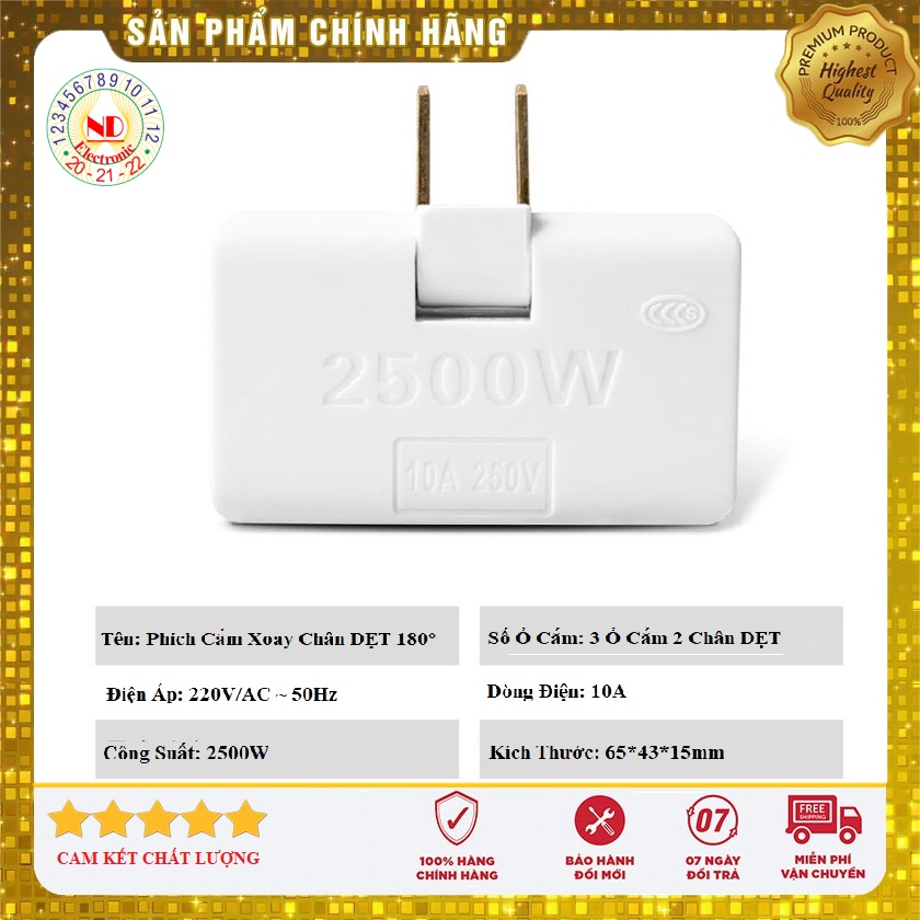 ✔ Phích Cắm Chia 3 Ổ Chân DẸT Chuẩn Nhật, Mỹ Xoay 180°, Phích Cắm Chuyển Đổi Chân DẸT Công Suất 2500W🟩 THÔNG SỐ SẢN PHẨM PHÍCH CẮM CHIA Ổ