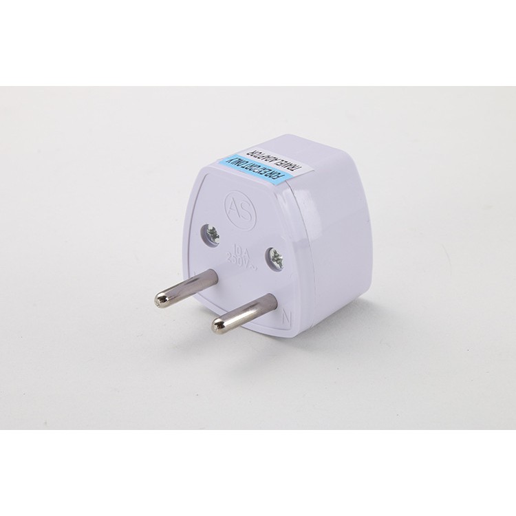 Phích cắm chuyển 3 chấu sang 2 chấu, đầu chuyển 3 chấu sang 2 chấuDùng chuyển đổi từ 3 chấu sang 2 chấu, sử dụng cho mọi gia đình Tiếp xúc được làm từ vật liệu đồng chất lượng cao I : 10 A - Uđm : 250 V/ 50 Hz