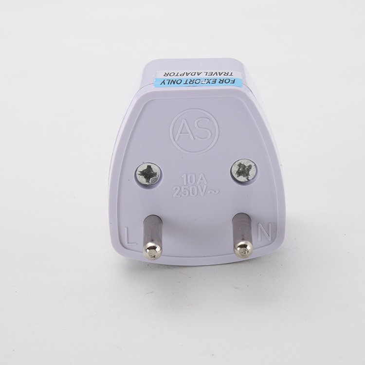 Đặc điểm của phích cắm chuyển đổi này là có 1 đầu cắm đa năng, có thể phù hợp với rất nhiều loại phích cắm có chân khác nhau. Đầu còn lại chỉ còn là chân tròn. Đây là kiểu phích cắm được sử dụng phổ biến ở các nước như: Pháp, Đức, Hàn Quốc, Indonesia, Nga