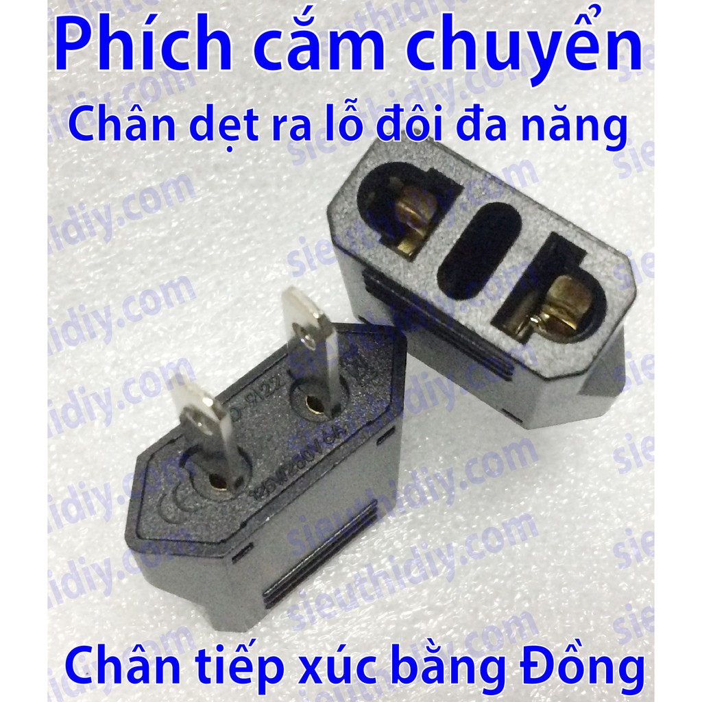 Phích cắm chuyển chuẩn Nhật, Úc ra lỗ đa năng đôi:- Chân cắm bằng đồng, dẹt có thể xoay được dùng cắm vào các ổ cắm chuẩn Nhật và Úc (chân dẹt thẳng và dẹt chéo).