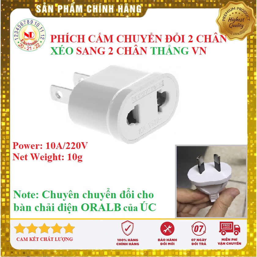 Giới thiệu Phích cắm chuyển đổi 2 CHÂN CHÉO chuẩn ÚC, Mỹ sang 2 CHÂN THẲNG DẸT chuẩn VN - Phích cắm chuyển đổi Bàn Chải Điện ORALB