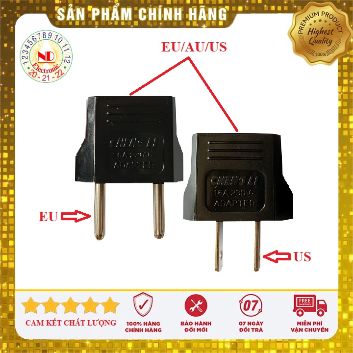 - Sản phẩm dùng chuyển đổi cho 2 chân chéo, 2 chân dẹt or hai chân tròn sang ổ điện 2 chân VN