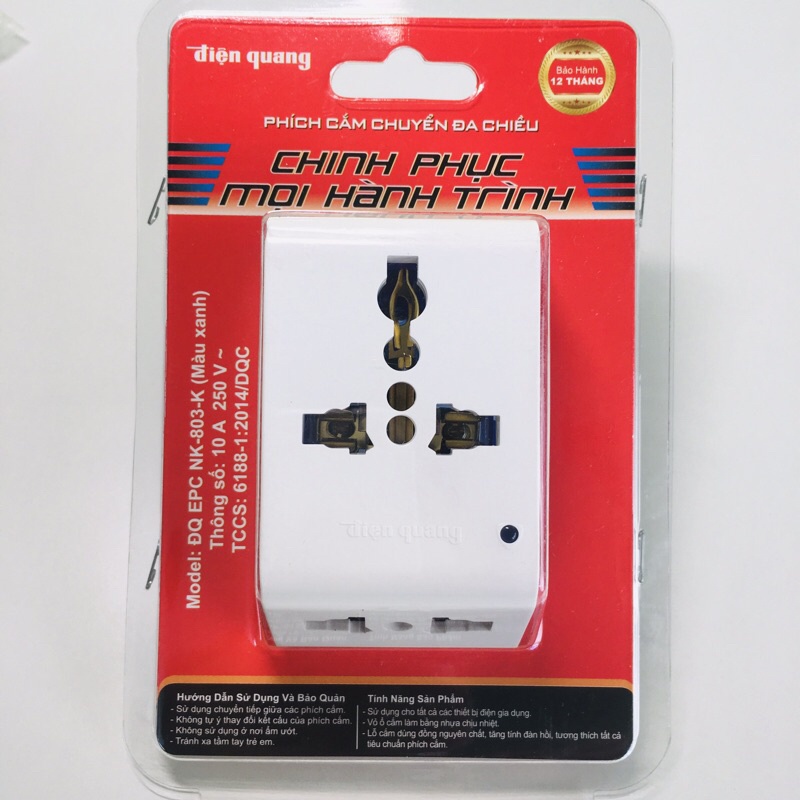 Thiết Bị Điện Gia Dụng > Mạch điện & Phụ tùng > Ổ cắm điện & Dây nối || Phích Cắm Chuyển Đổi Đa Năng 2500W nhựa ABS chống cháy Cao Cấp Điện Quang ĐQ EPC 803KCòn hàng