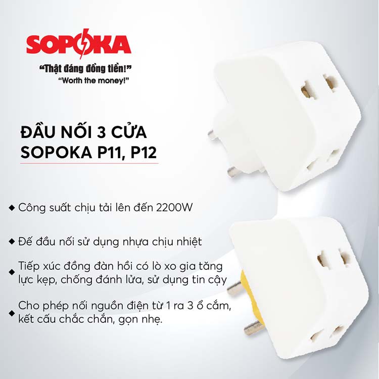*Đầu nối 3 cửa SOPOKA P11:-Công suất: 2200W