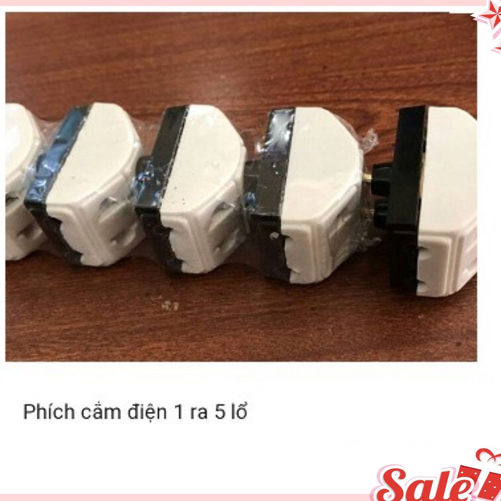 Phích cắm 1 ra 5 lỗ : 1 phích cắm ra được 5 lỗ tiện dụng ,lỗ có màng che an toàn, võ nhựa cách điện .giá thành hợp lý .