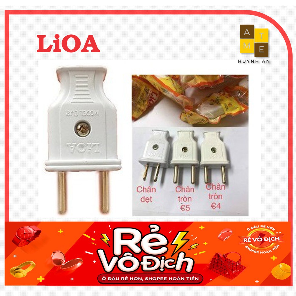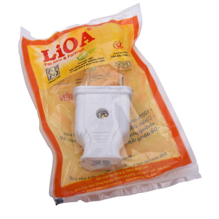 Thiết Bị Điện Gia Dụng > Mạch điện & Phụ tùng > Ổ cắm điện & Dây nối || Phích cắm điện - Chuôi cắm điện 2 chấu chân dẹp và chân tròn đầu đực, Màu Trắng, Hãng LioaCòn hàng
