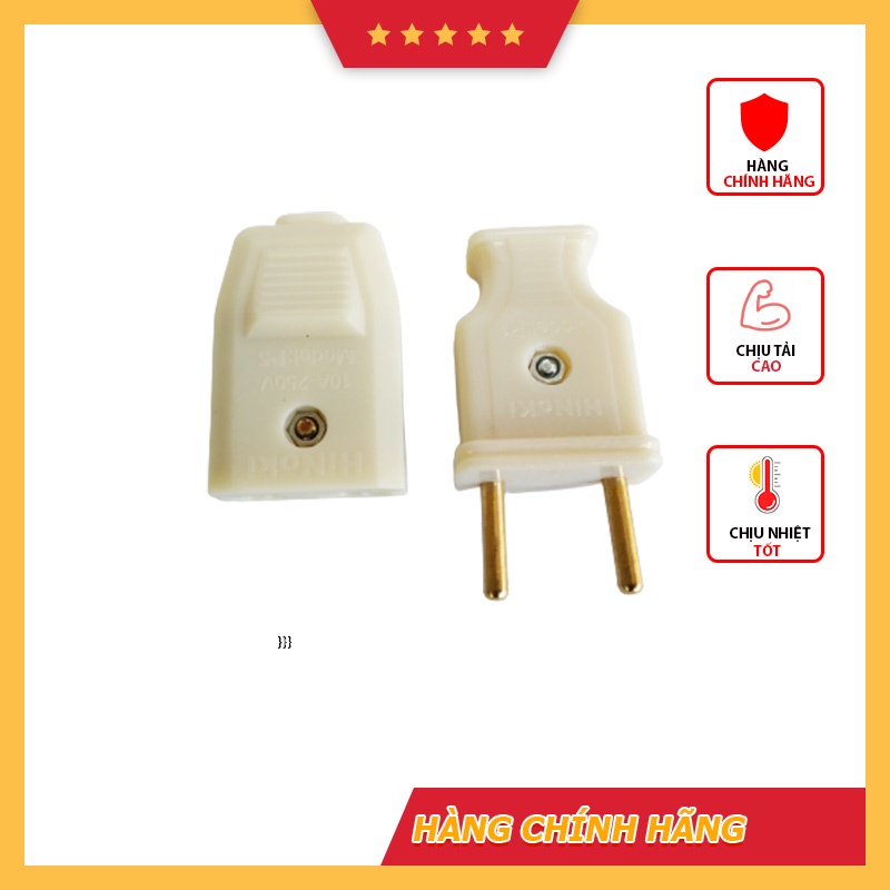 Phích cắm điện hãng Hinoki, có 2 tùy chọn:- Phích cắm đực( phích dương) chân cắm tròn, màu trắng cao cấp 10A - 250V/50Hz