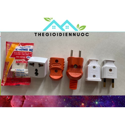 Thiết Bị Điện Gia Dụng > Mạch điện & Phụ tùng > Ổ cắm điện & Dây nối || Phích cắm điện siêu chịu tải SOPOKA, phích cắm đực (dương), cái (âm), ổ cắm chia 3 ra 2, chống cháy, chống vỡ, chân đồngCòn hàng