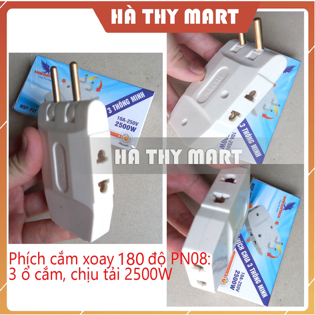 Giới thiệu Phích cắm điện thông minh 1 chia ra 3 ổ cắm Nachi PN08 2500W [xoay 180 độ]