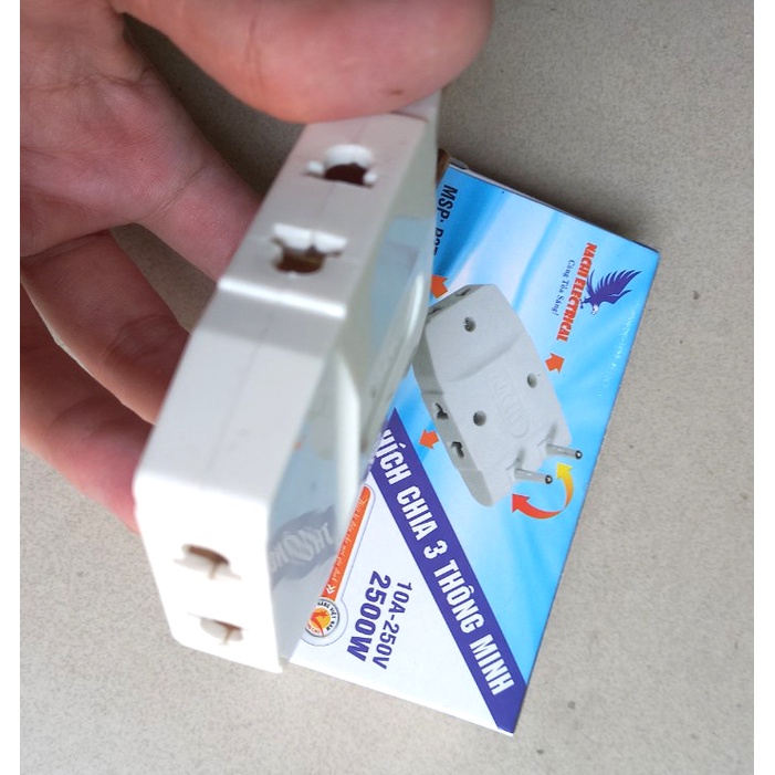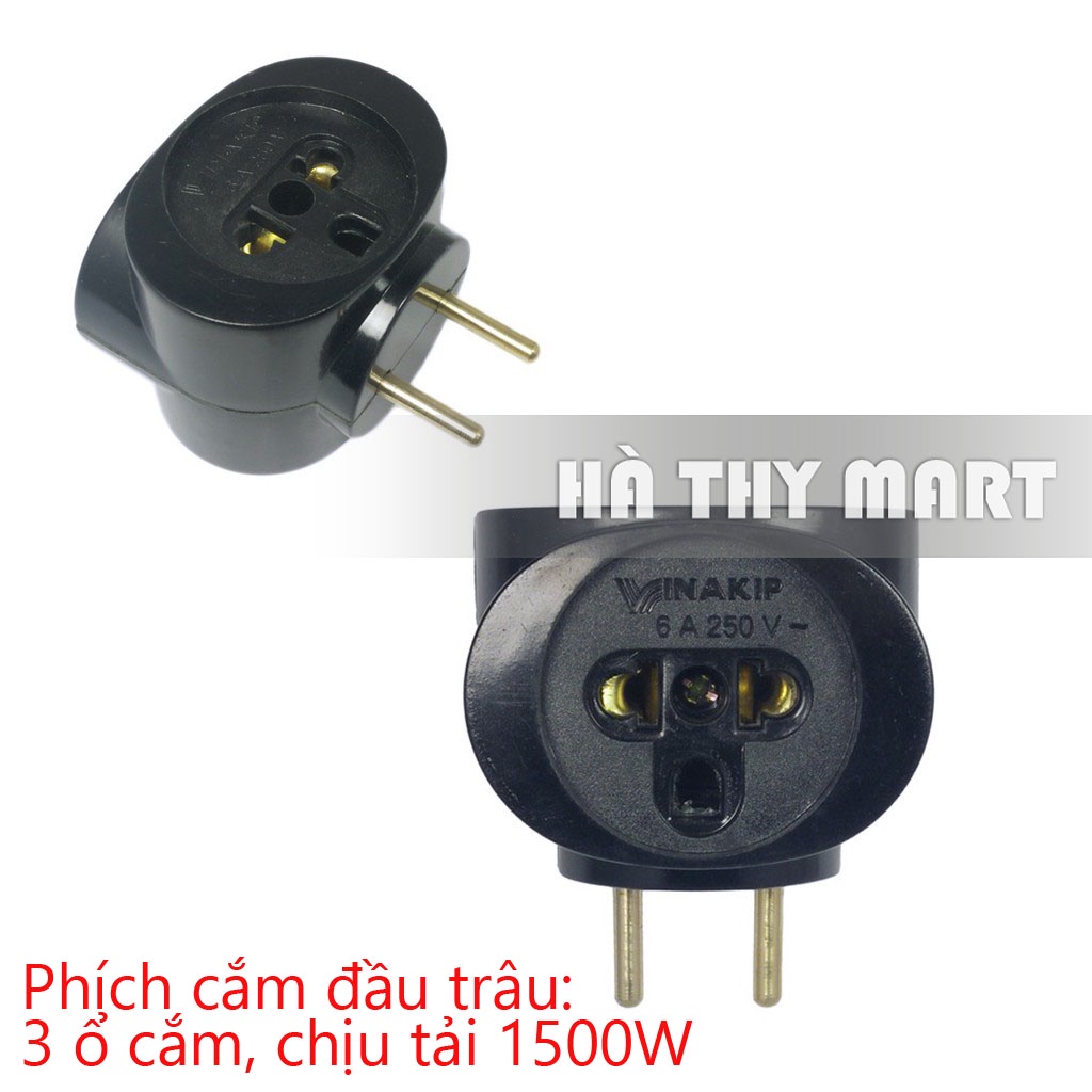 - 1 phích chia ra 3 cửa cắm: cho phép cắm nối từ một ổ cắm tạo thành 3 ổ cắm mới rất tiện dụng.