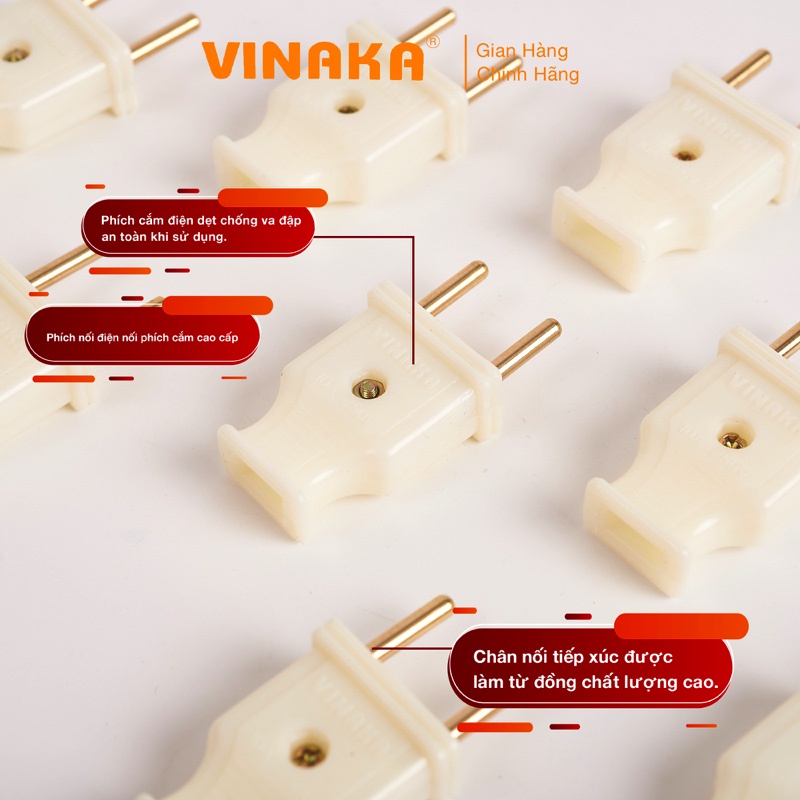 - Phích cắm điện Vinaka được sử dụng đấu dây nguồn cho các thiết bị điện trong cuộc sống thường ngày hoặc thay thế cho các thiết bị có phích cắm hỏng, thay thế công tắc bật tắt.