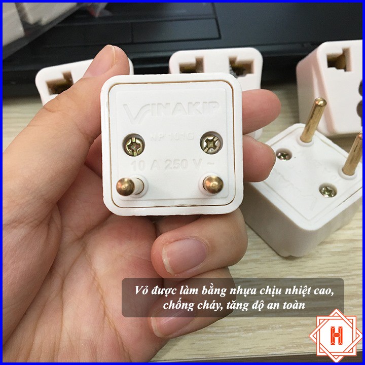 Phích Cắm Điện VINAKIP Chuyển Đổi Ổ 2 Chấu Thành 3 Chấu Đa Năng 10A-250V { H }