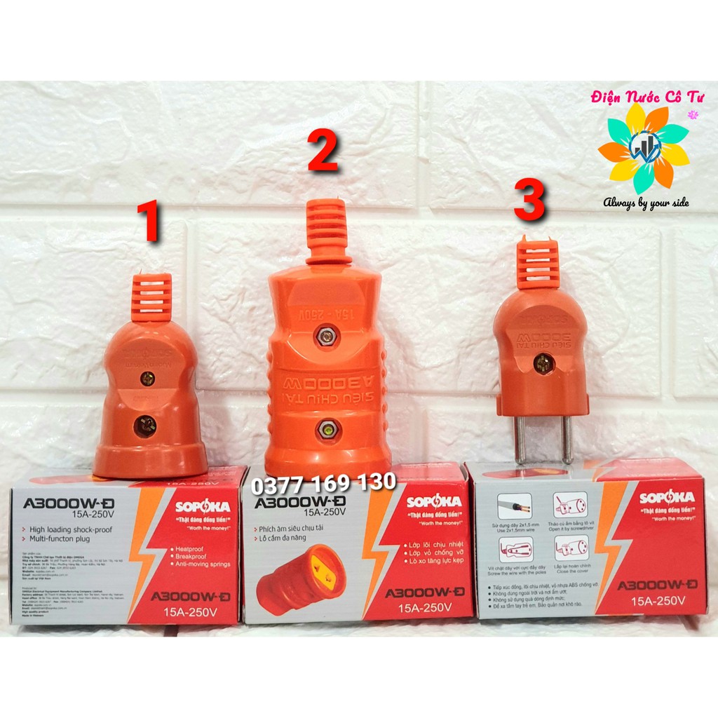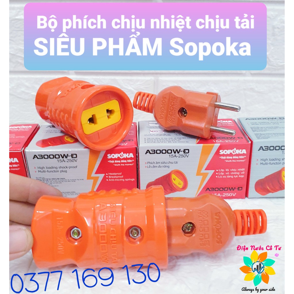Phích cắm ĐỰC phích ÂM chịu nhiệt chịu tải Sopoka 3000W