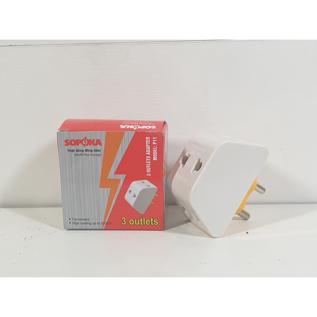 Thiết Bị Điện Gia Dụng > Mạch điện & Phụ tùng > Ổ cắm điện & Dây nối || Phích Cắm Ổ Cắm Chia 3 2200W SOPOKA - Điện nước gia dụng Hoàng KimCòn hàng
